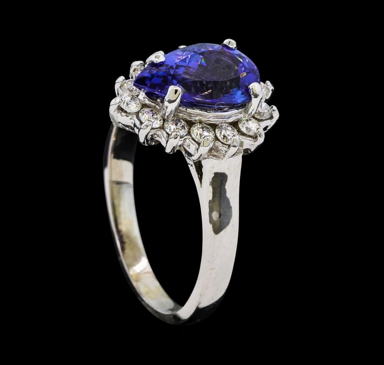 One Tanzanite and Diamond Ring including: 14KT White Gold weighing a total of 4.41 grams, Tanzanite weighing a total of 2.17ct, and 14 Diamonds weighing a total of 0.44ctw.