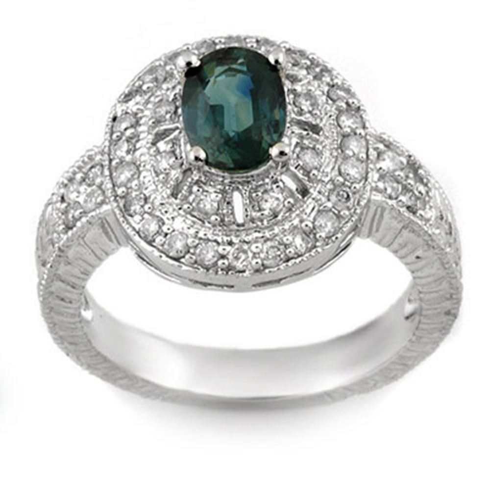 REF-85F5M - SKU: 10990 ---- 2.08 ctw Blue Sapphire & Diamond Ring 14k White Gold