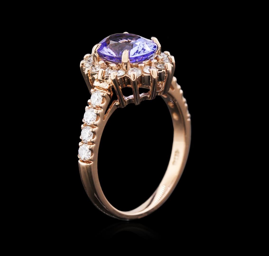 One ring featuring: 14KT rose gold weighing 3.98 grams containing one tanzanite center stone with a total weight of 2.08ct and 22 diamonds with a total weight of 0.76ct.
