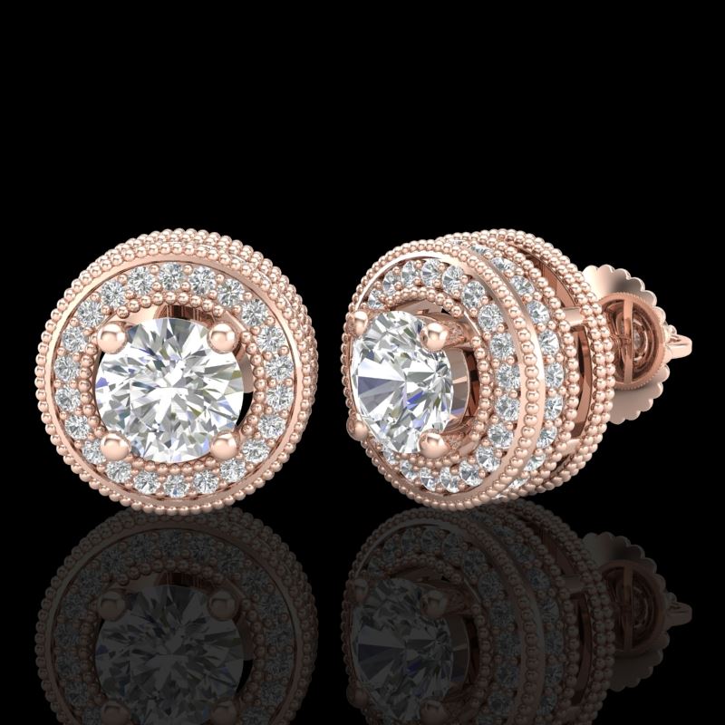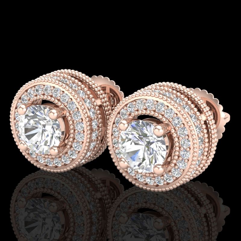 2.09 CTW VS/SI Diamond Solitaire Art Deco Stud Earrings 18K Rose Gold ---- Luxury Designer Brand Earring Appraised Retail Price at $14,000 ---- SKU Number US37140 18k Rose gold Earring Size is Larger, Earring measuring approx. Uniform, weighing in total approx. 6 grams. Made in the USA and is stamped 18k, Main stone 1.09 carat total weight containing 2 pieces of H-J color with VS/SI quality Round shape cut Diamond , Stone #2 1 carat total weight containing 96 pieces of H-I color with VS/SI quality Round shape cut
