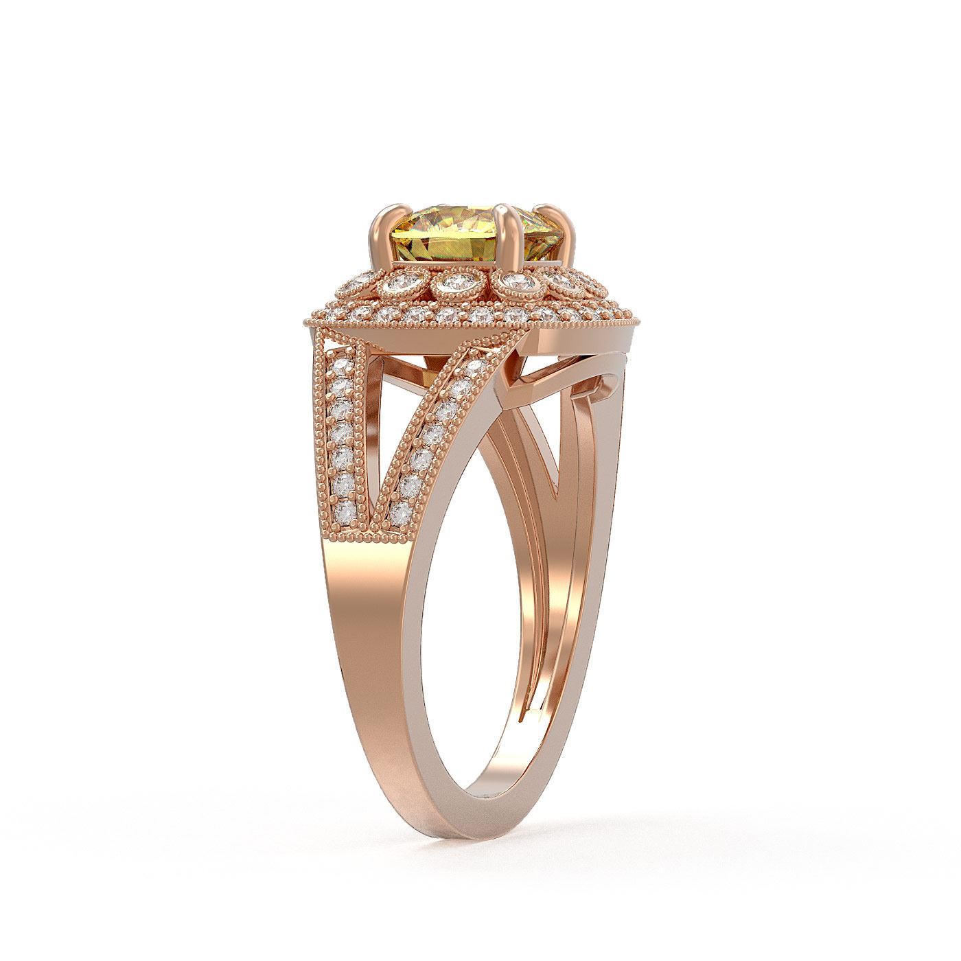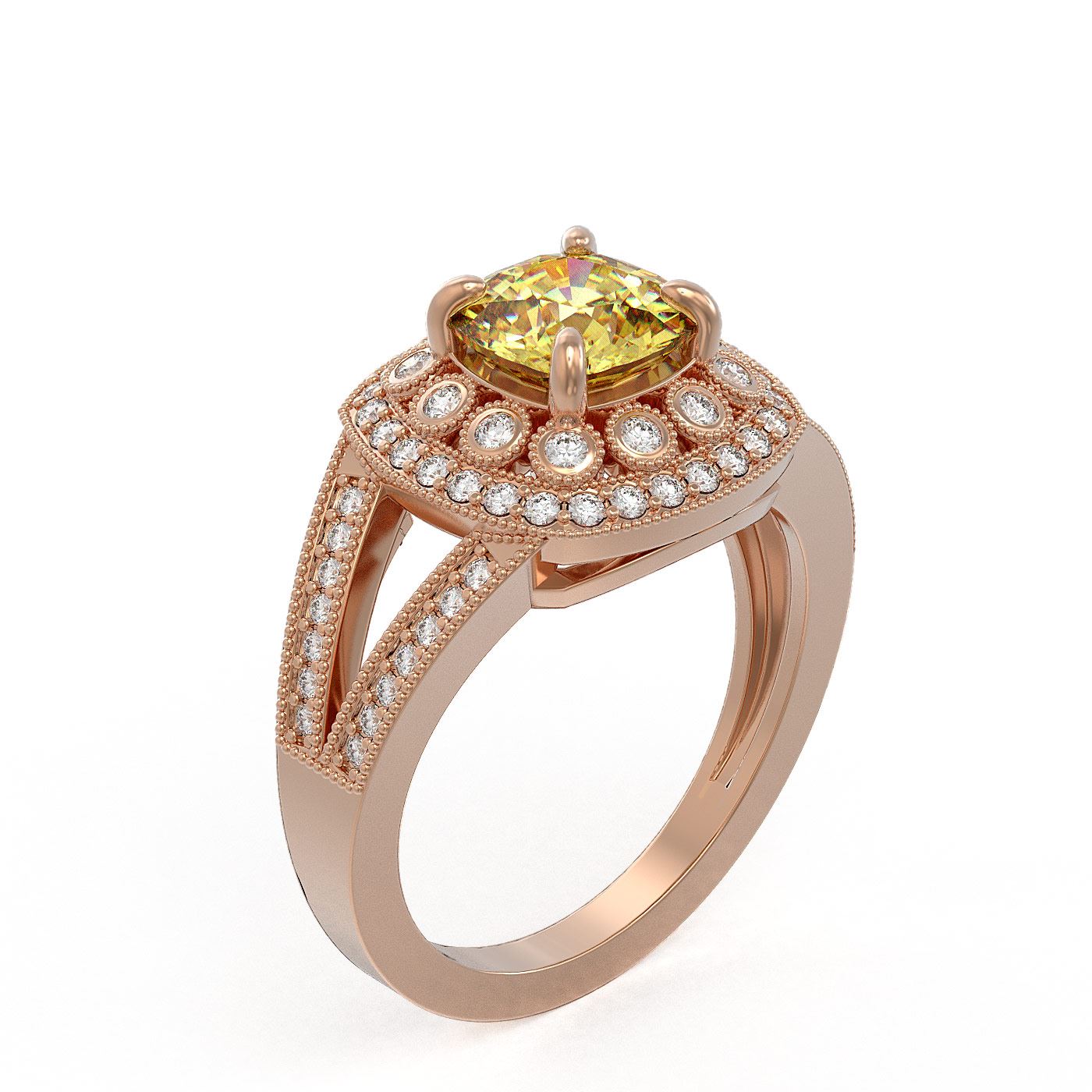 REF-83K6Y - SKU: 44040 ---- 2.09 ctw Canary Citrine & Diamond Victorian Ring 14K Rose Gold