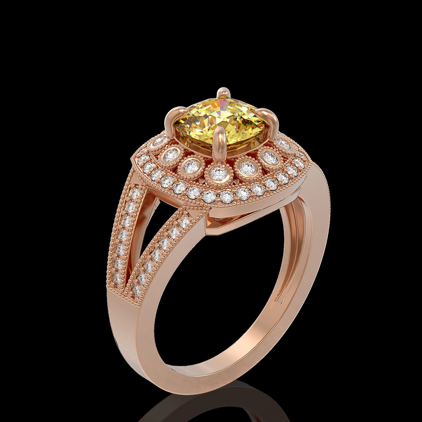 REF-83R6K - SKU: 44040 ---- 2.09 ctw Canary Citrine & Diamond Victorian Ring 14K Rose Gold