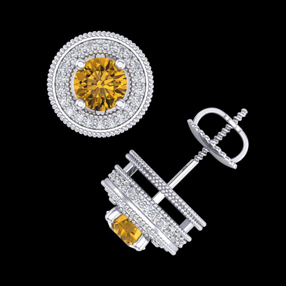 REF-354W5H - SKU: 38015 ---- 2.09 ctw Intense Fancy Yellow Diamond Art Deco Earrings 18k White Gold