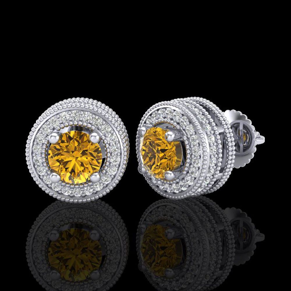 REF-354W5H - SKU: 38015 ---- 2.09 ctw Intense Fancy Yellow Diamond Art Deco Earrings 18k White Gold
