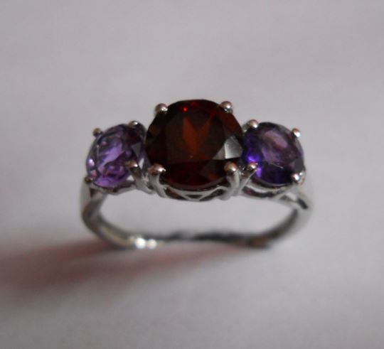 2.090g Ring of Garnet and Amethyst Sterling Silver