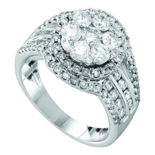 REF-309Y9Z ---- 2.0CT Diamond Flower 14KT Ring White Gold - SKU: 53040