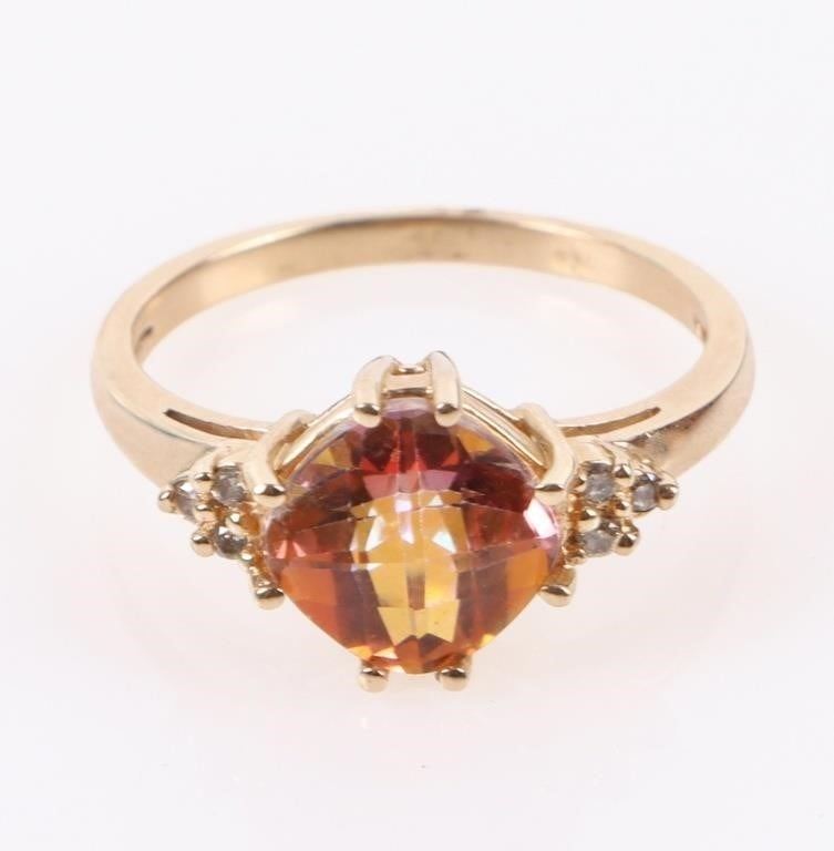 2.0ct orange mystic topaz diamond 14k yellow gold ring.