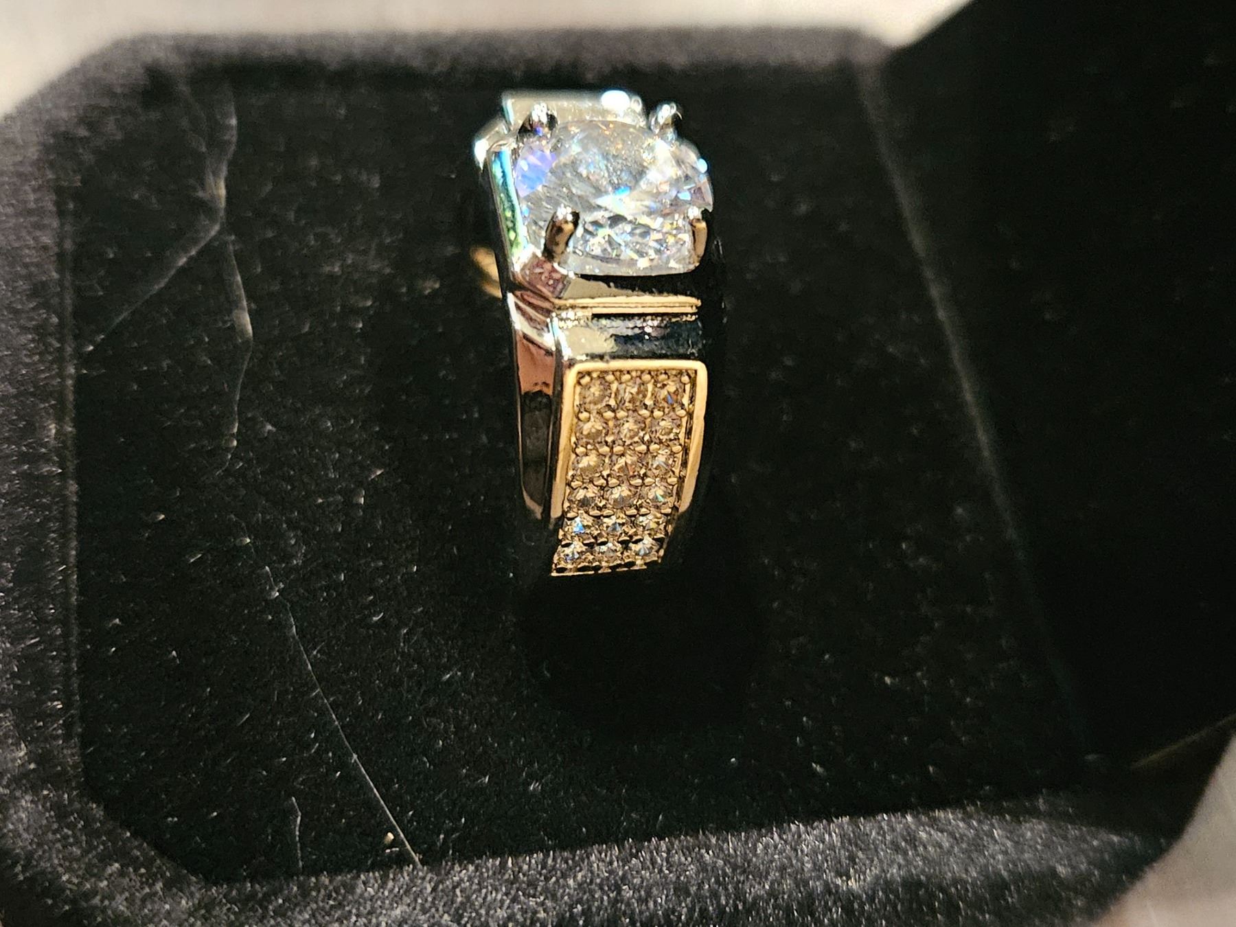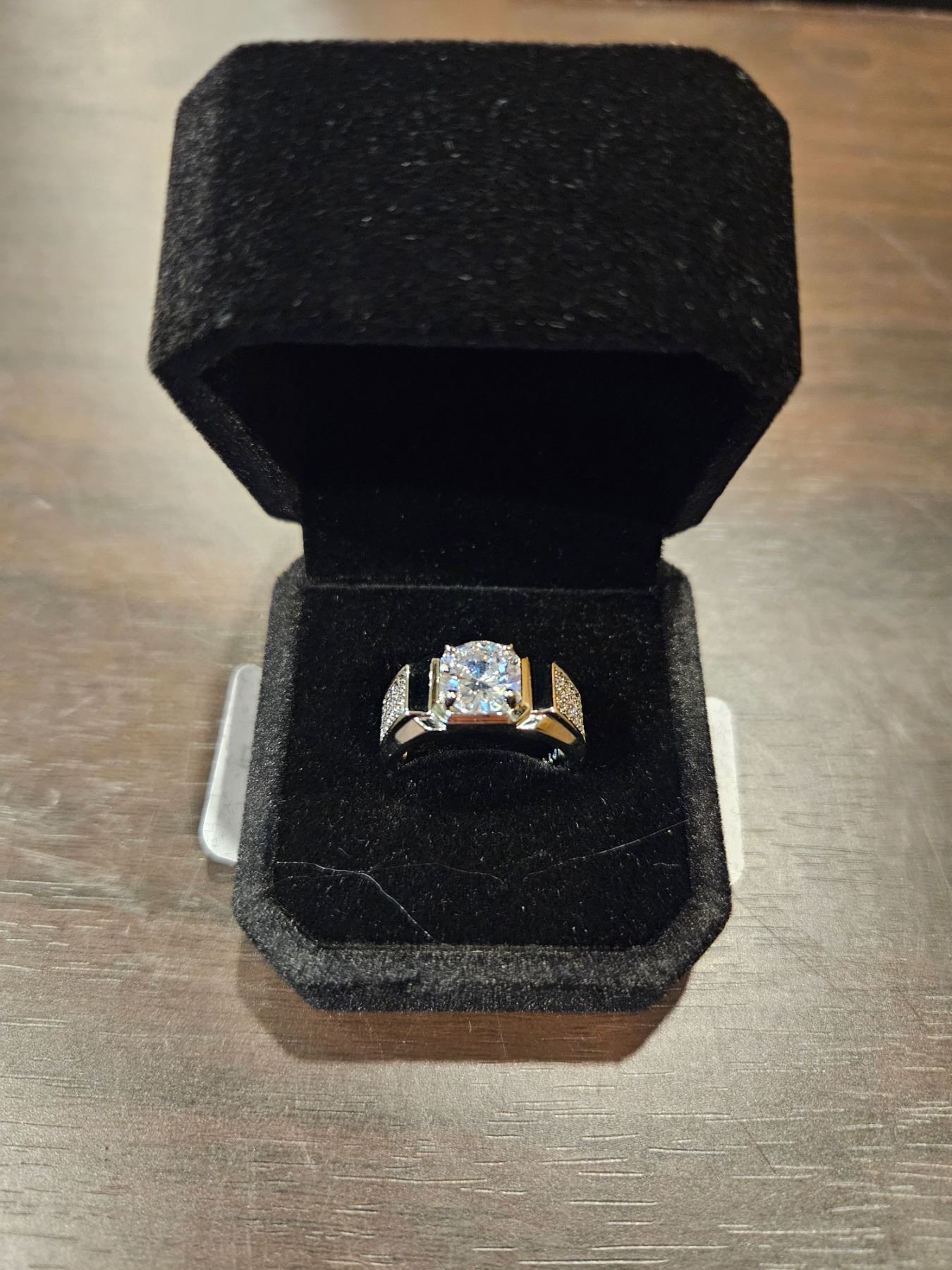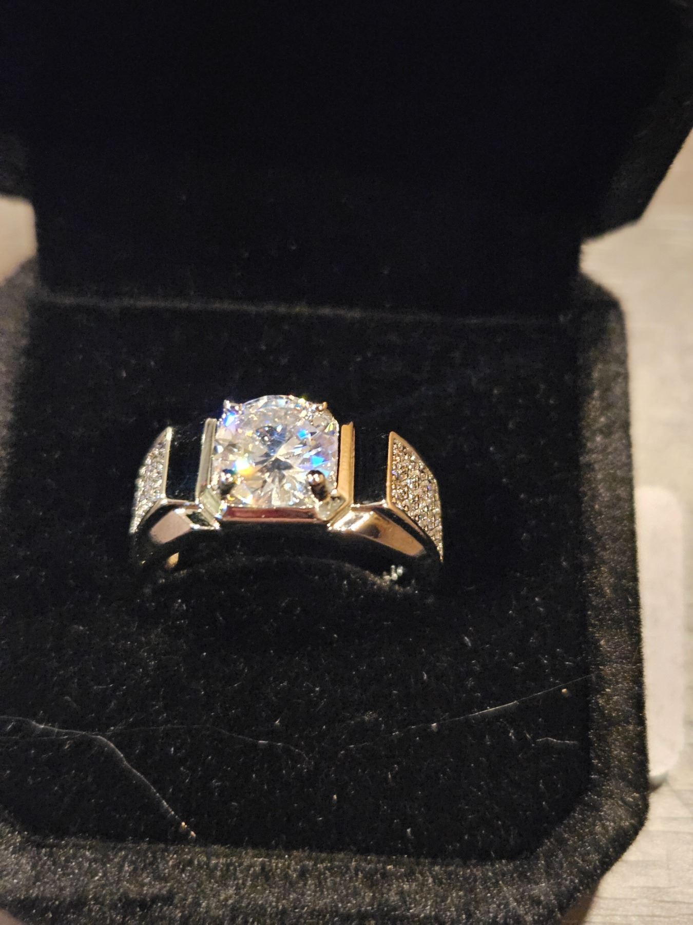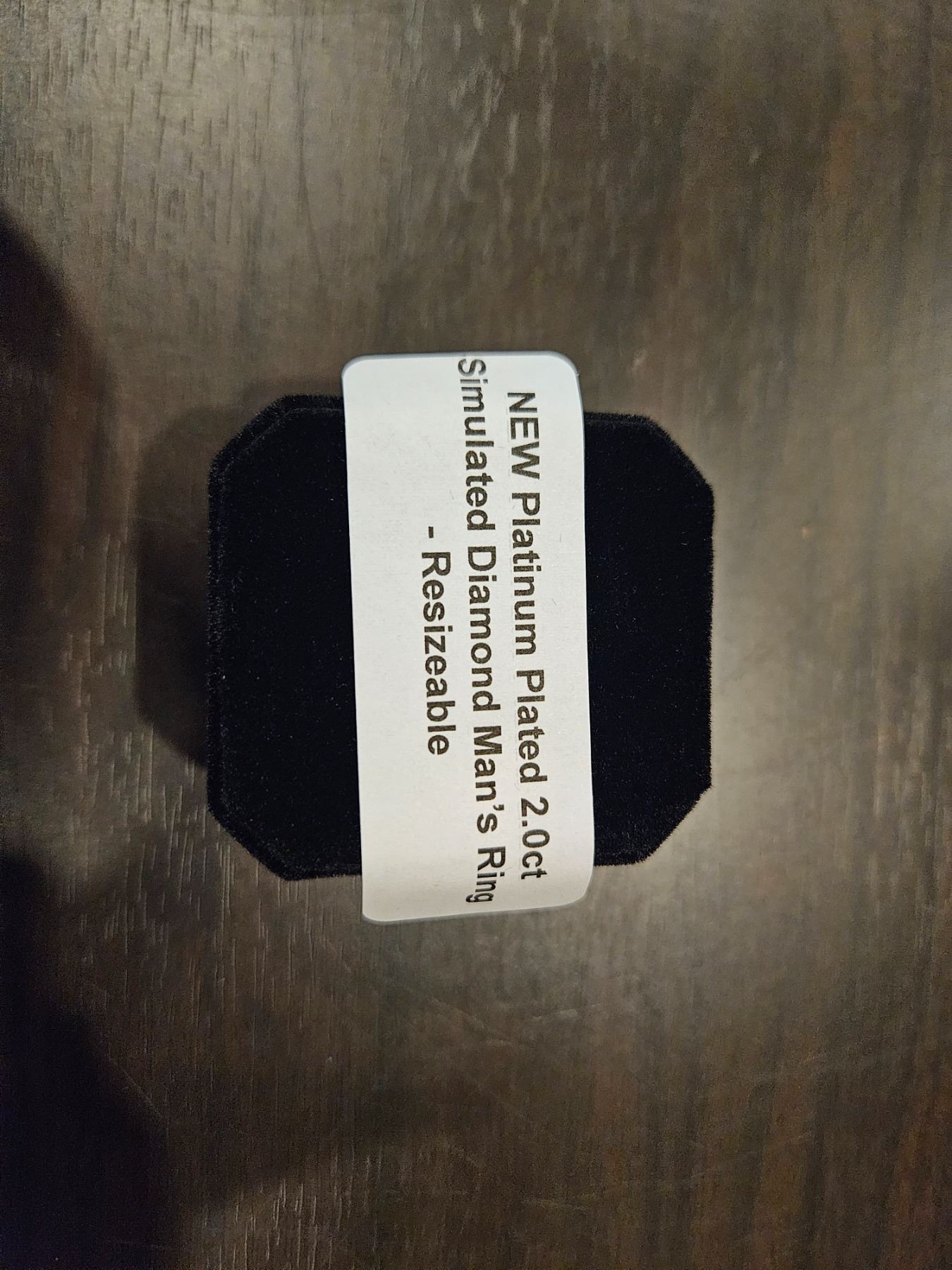 Platinum plated simulated diamond mens ring- resizeable