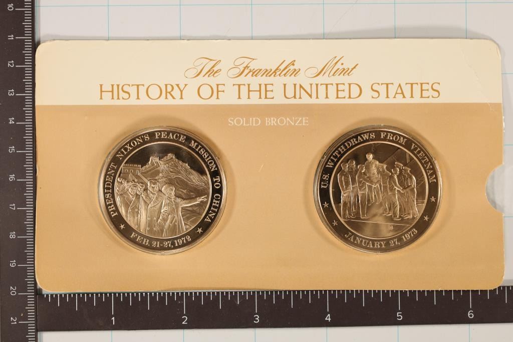 MEDALS: "PRESIDENT NIXONS PEACE MISSION TO CHINA" AND "US WITHDRAWS FROM VIETNAM", IN ORIGINAL FRANKLIN MINT PACKAGING