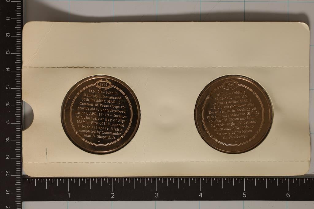 MEDALS: NIXON-KENNEDY TV DEBATES SWAY ELECTION AND PEACE CORP ESTABLISHED. IN ORIGINAL FRANKLIN MINT PACKAGING