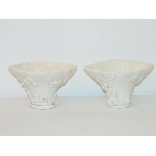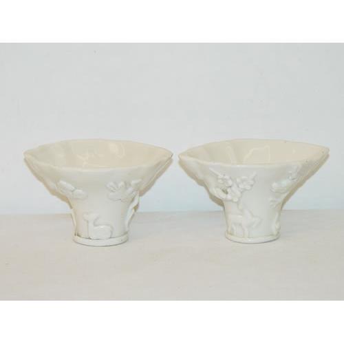 2 1/2" CHEN LUNG STYLE CHINESE PORCELAIN VASES W/ RAISED DECORATION OF MYSTICAL ANIMALS IN A LANDSCAPE- SIGNED (2 1/2" T X 4" L) - WEAR