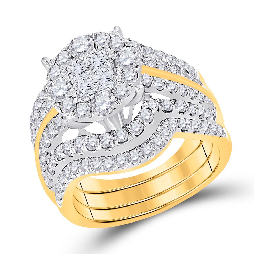 14kt Yellow Gold Womens Princess Diamond Bridal Wedding Engagement Ring Band Set 2-1/2 Cttw