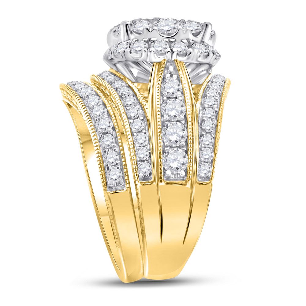 14kt Yellow Gold Womens Princess Diamond Bridal Wedding Engagement Ring Band Set 2-1/2 Cttw