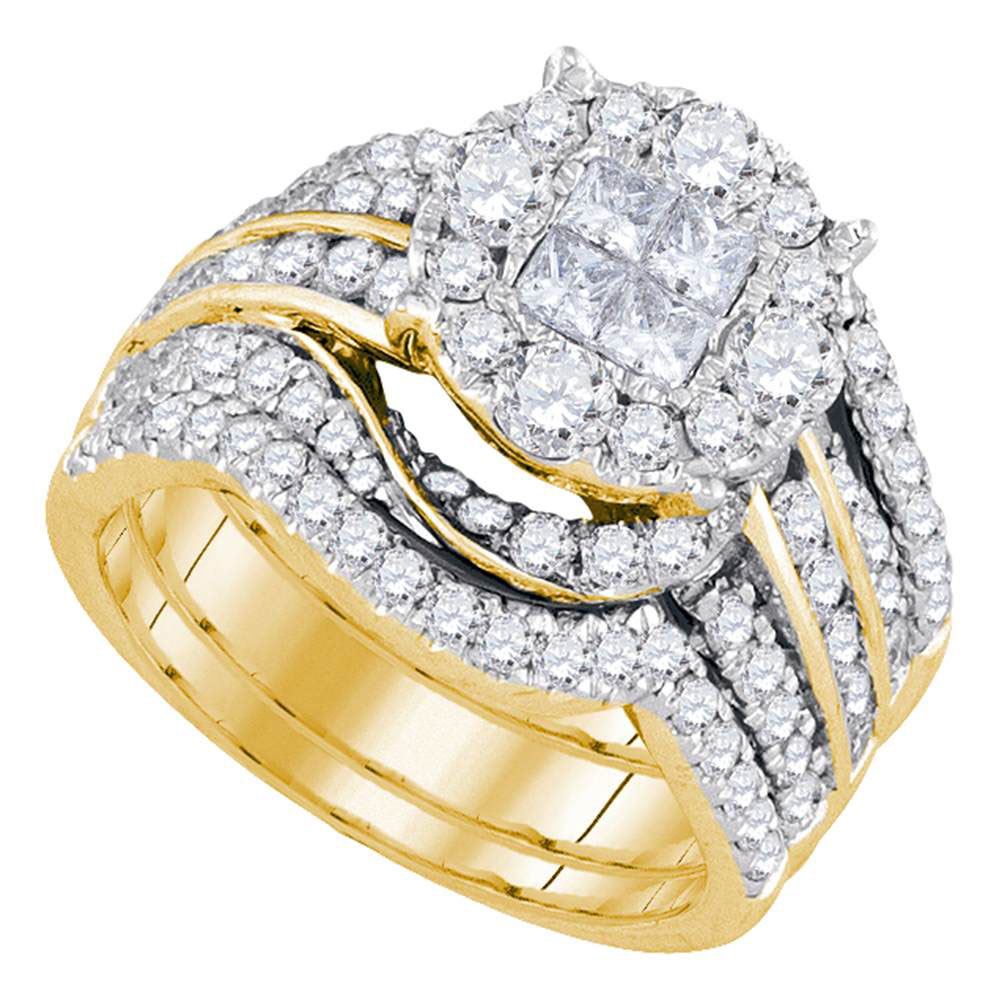 14kt Yellow Gold Womens Princess Round Diamond Bridal Wedding Engagement Ring Band Set 2-1/2 Cttw