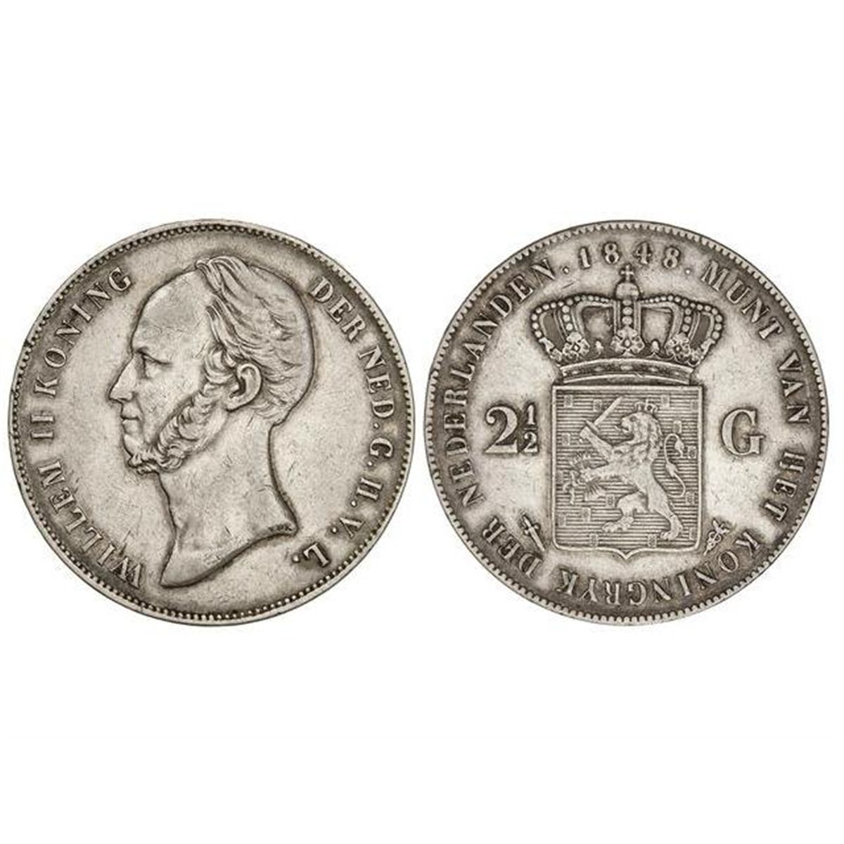2 1/2 Gulden. - 1848. - GUILLERMO II. - AR. (Pequeños golpecitos). KM-69. MBC. - -