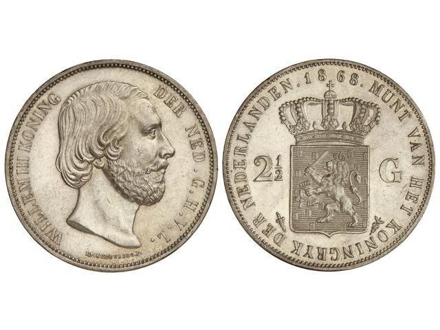 2 1/2 Gulden. - 1868. - GUILLERMO III. - AR. (Leves golpecitos). KM-82. EBC. - -