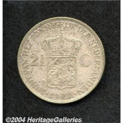 <B>2 1/2 Gulden 1932 Deep Hairlines,</B></I> KM165 VF. <BR><BR><B>Important notice:</B> Heritage usually auctions material at the rate of 200-250 lots per hour. On some occasions eBay Live bid software or the Internet may not be able to keep up with the pace of the auction. We recommend placing a realistic absentee bid now as insurance to avoid disappointment. Occasionally the auctioneer may eliminate or reject an eBay Live bid, and the auctioneer may also reopen a lot after the close of the eBay live bidding (usually because we missed an audience bid), and may reject your bid even if it shows you as the winning bidder. By bidding via eBay Live, you agree that Heritage may award the lot to another bidder at its sole discretion under the circumstances described above or any other reasonable circumstances. Since eBay bids are not shown to us until we open the lot on the floor, we treat those bids just like floor bids. In most cases the floor responds before the eBay bid is presented to us, due to Internet lag time, so for consistency we have made it a policy that floor bids are always considered first over tie eBay live bids. Also please note that all Heritage lots purchased through eBay Live carry a 20% Buyer's Premium. Please make sure you read the Terms and Conditions before you bid.