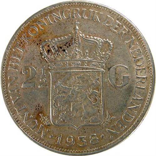 2-1/2 Gulden 1938, Deep Hairlines, VF