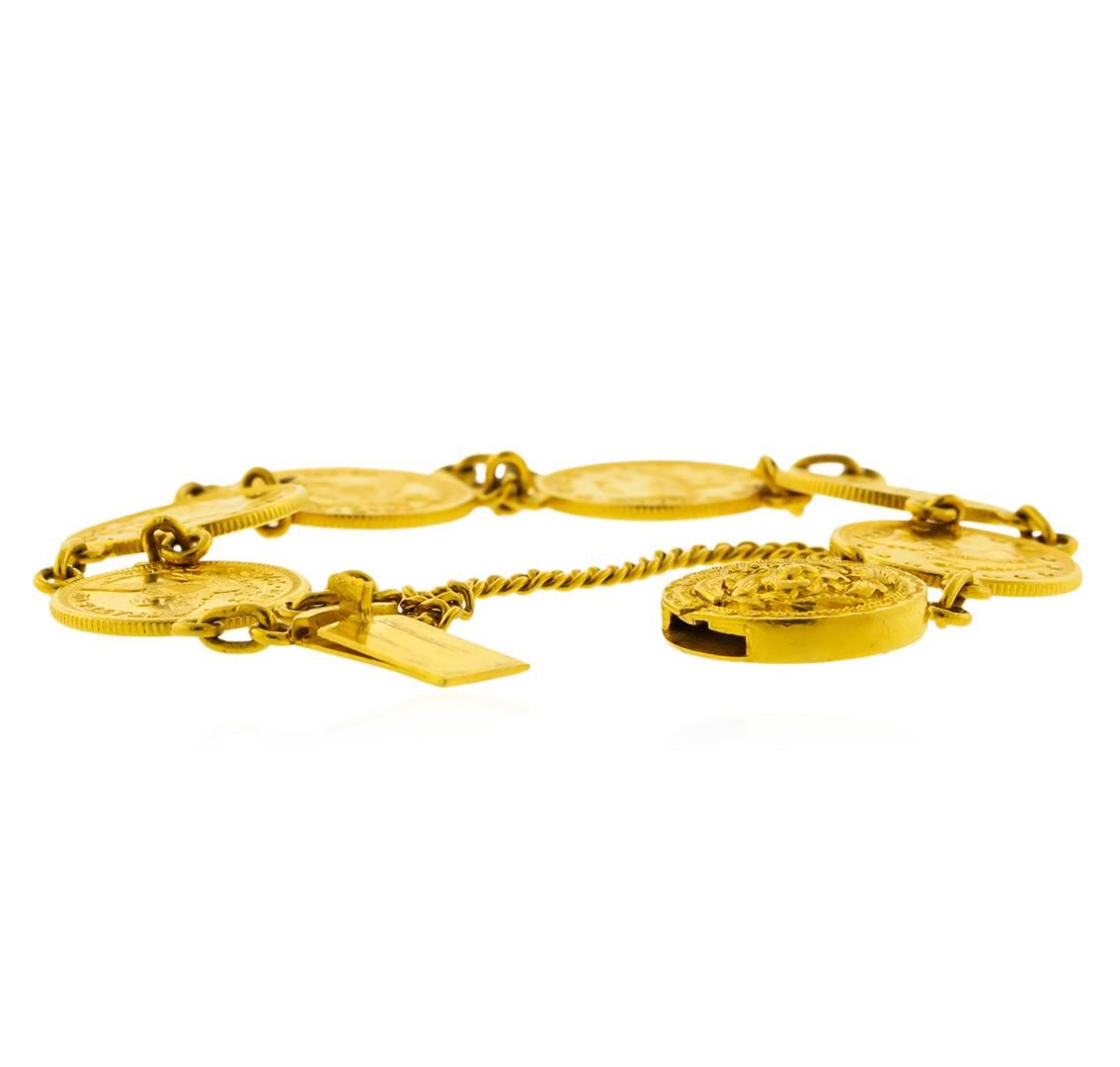 One $2 1/2 Liberty Head Quarter Eagle Gold Coin Bracelet. The total weight of bracelet is 41.5 grams. Bracelet contains six 2 1/2 dollar Liberty head quarter eagles. (1) 1902 coin, (1) 1903 coin, (1) 1906 coin, and (3) 1907 coins.