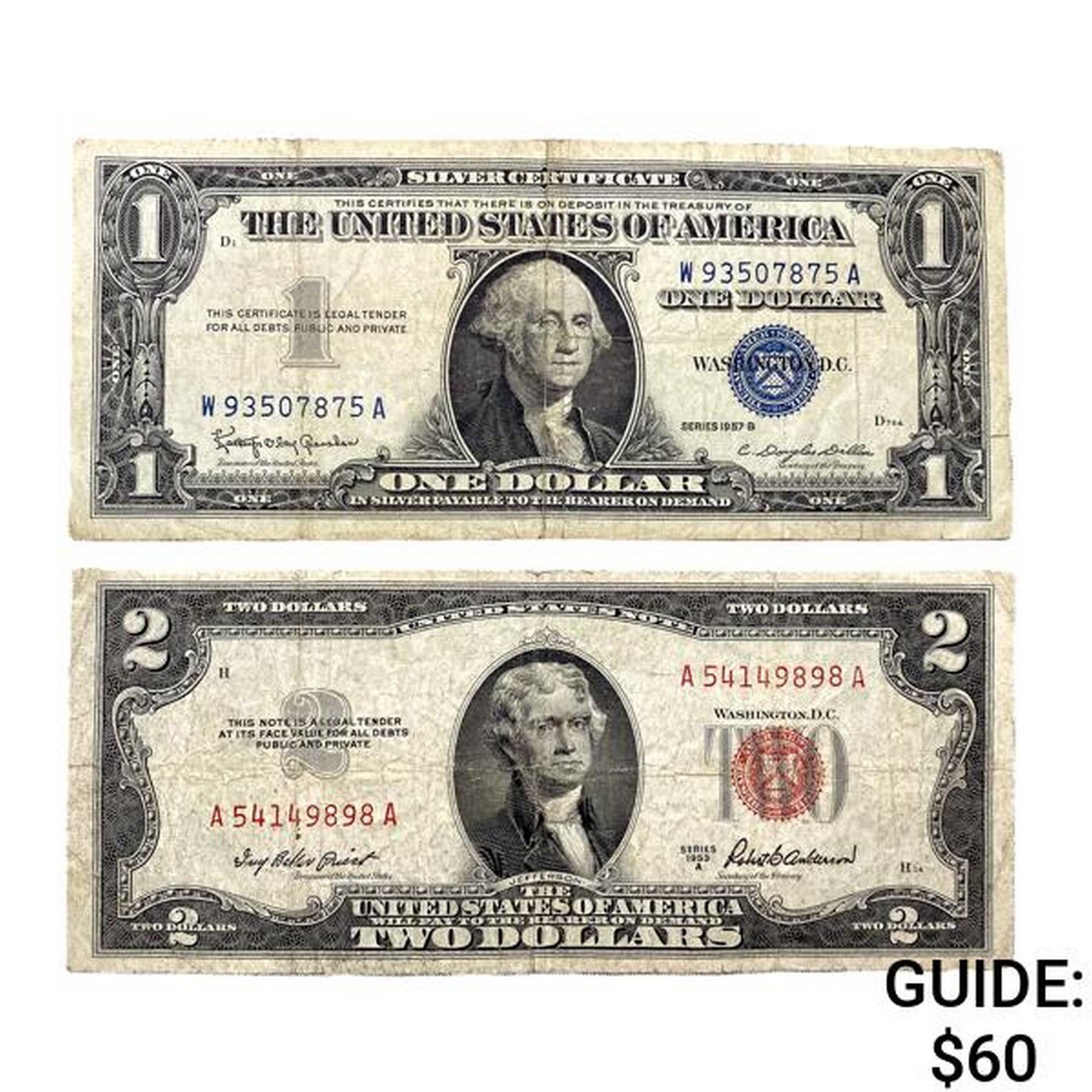[2] $1 & $2 Silver Cert. & Legal Tender Notes [195