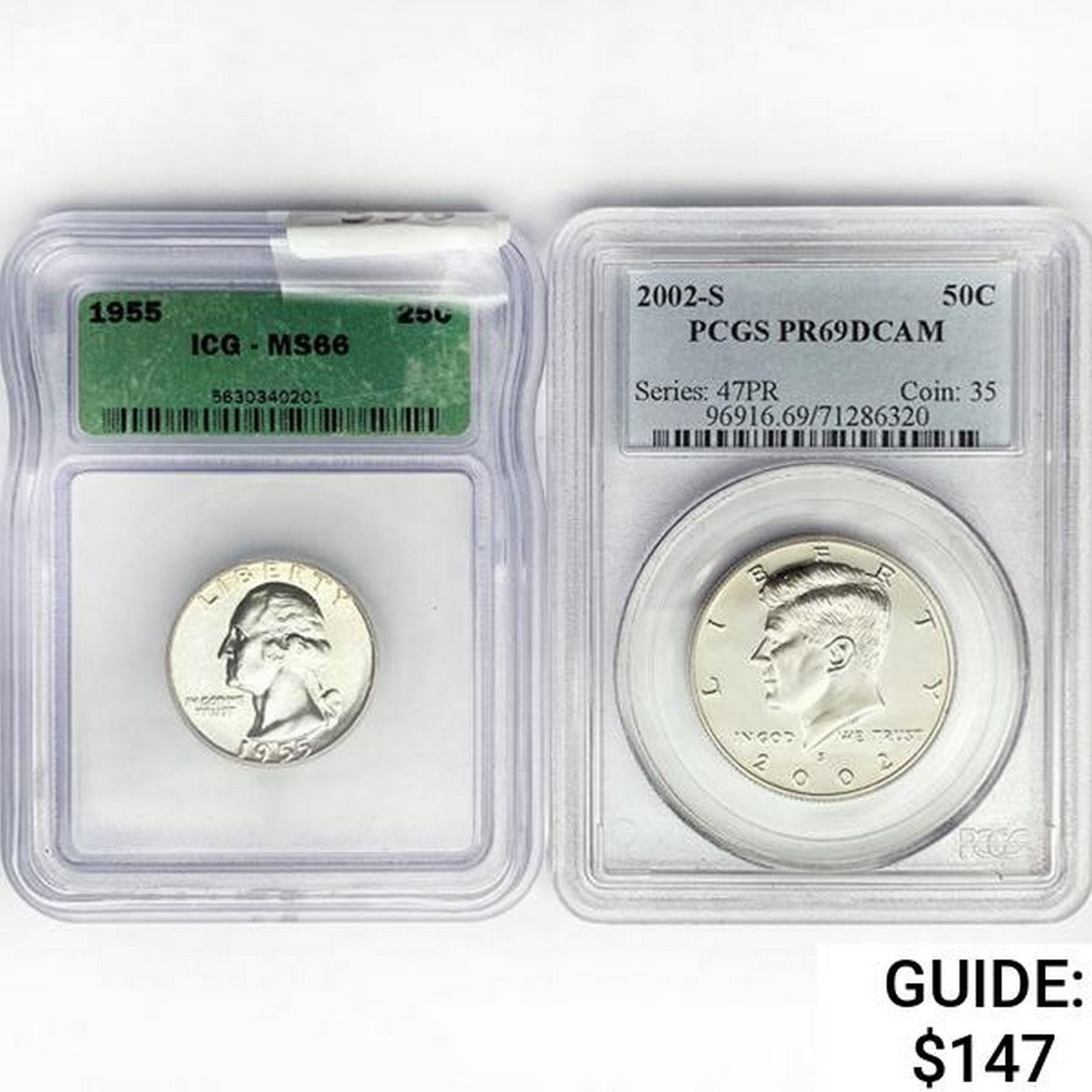 [2] 1 25C, 1 50C ICG,PCGS 1955-2002