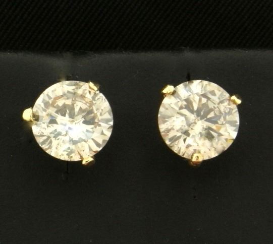 In 14k yellow gold. Diamonds are L color, I clarity, VG cut with lots of sparkle. Set in a 3 prong Martini setting with protector backs for safety. 1.6g.