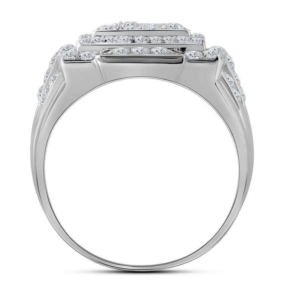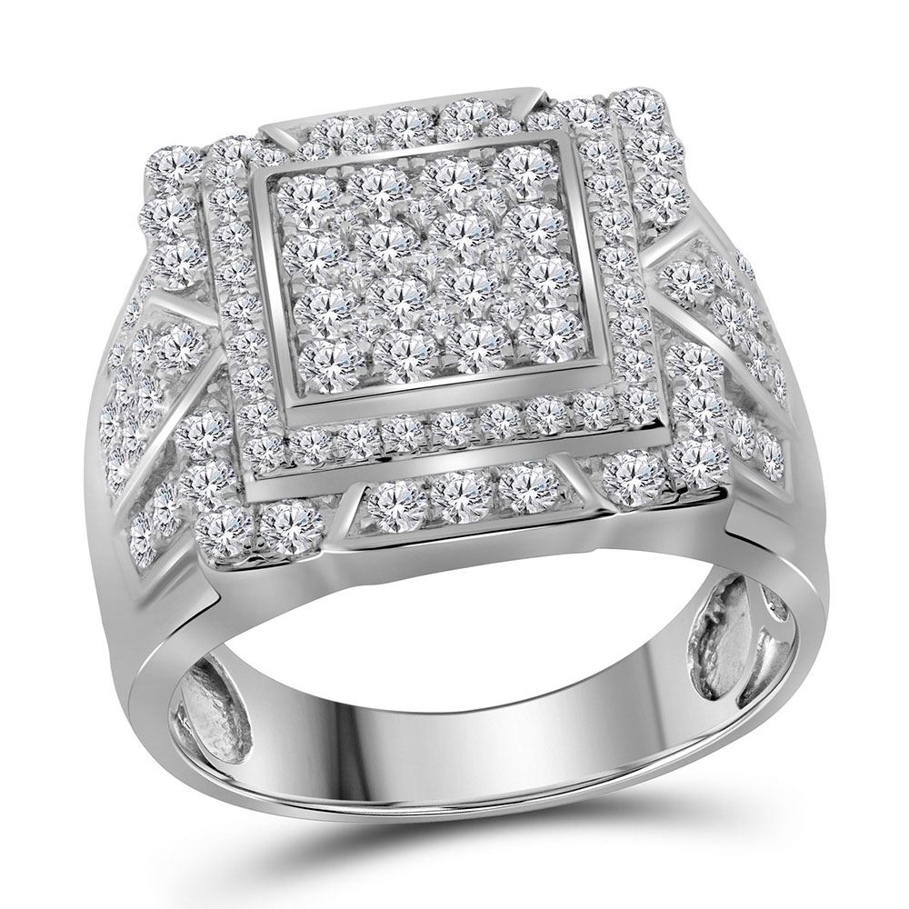 10kt White Gold Mens Round Diamond Square Frame Cluster Ring 2-1/4 Cttw