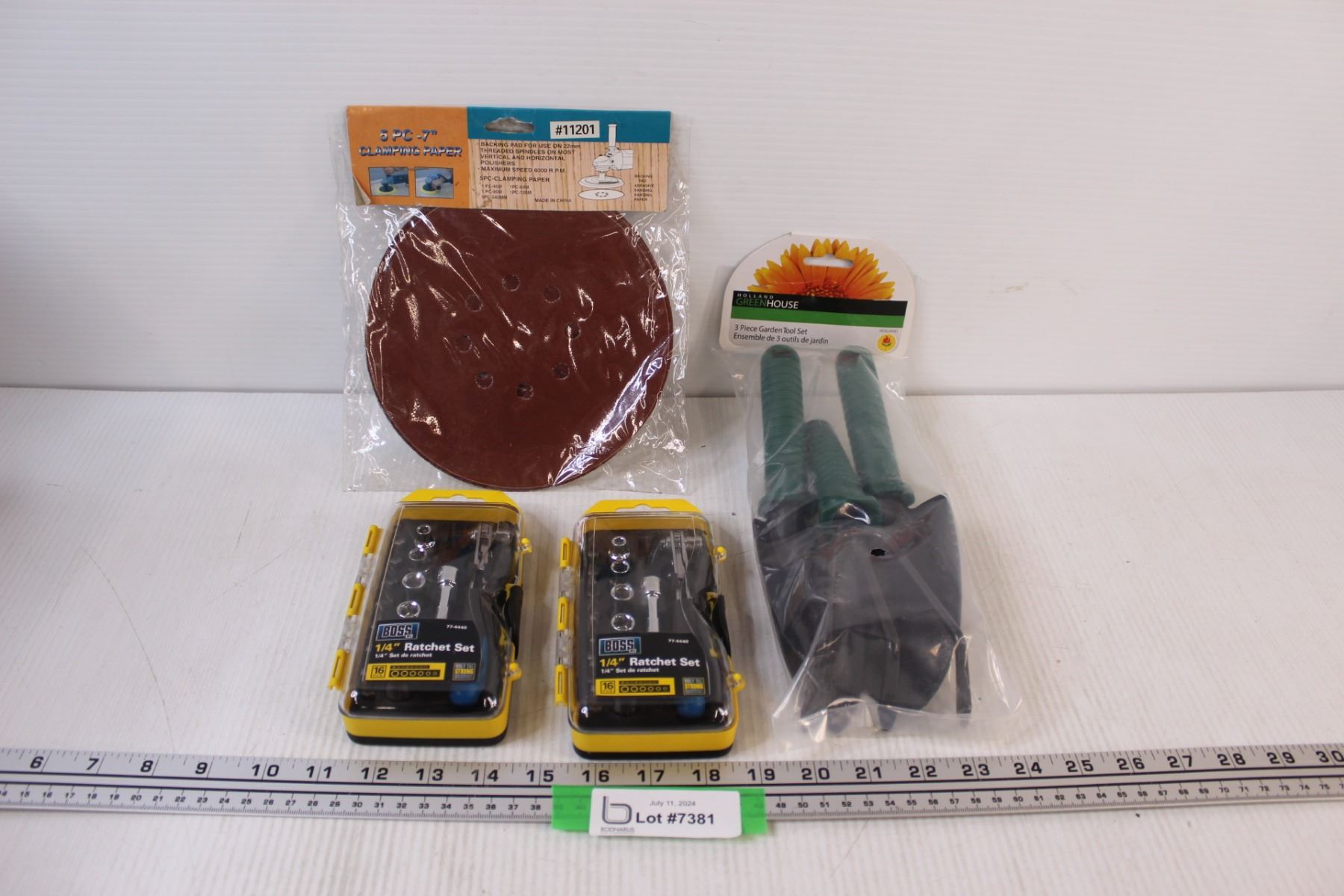 (2) 1/4" Ratchet Set, Hand Garden Tools, 7" Sanding Paper