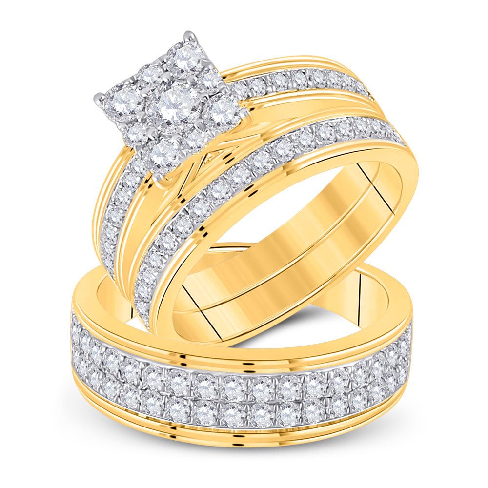 REF-218A2M - 2 & 1/5 CTW His Hers Round Diamond Cluster Matching Wedding Set 14kt Yellow Gold - REF-218A2M