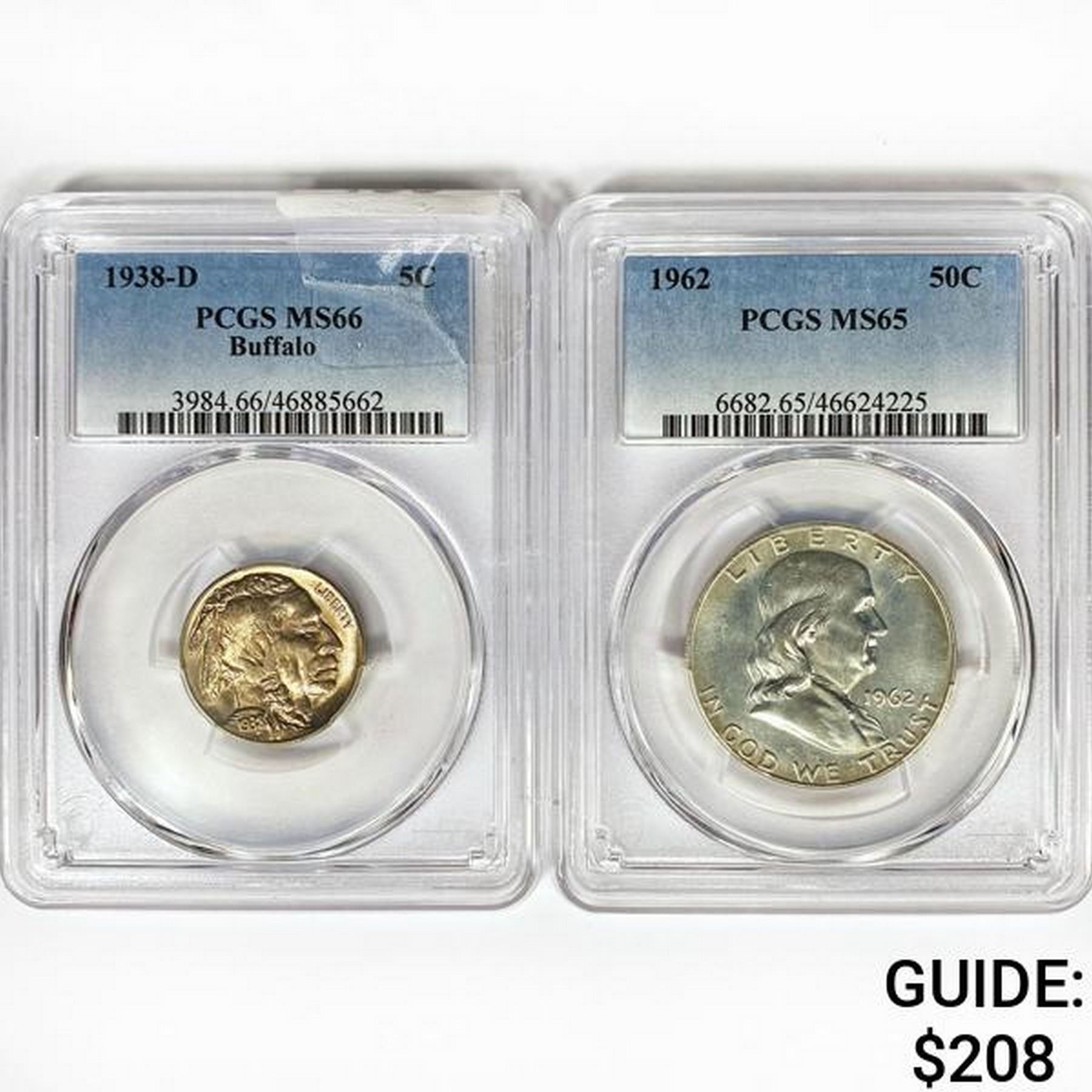 (2) 1 5C, 1 50C PCGS MS 1938-1962