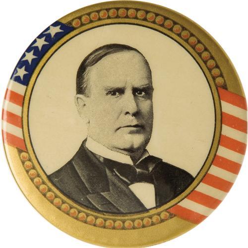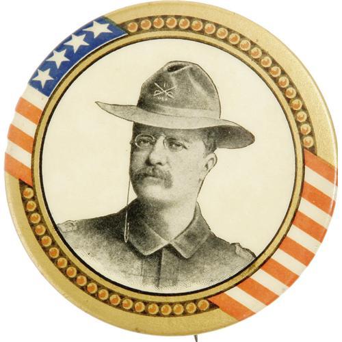 <B>Massive 2 1/8" McKinley & Roosevelt Button Pair from 1900, with Teddy in Rough Rider Uniform.</B></I> The Roosevelt is the key here, selling in the $1500 range alone. But what a pair these make, especially in this choice condition. <I>From the Norman Loewenstern Collection.</B></I>