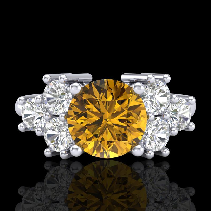 REF-290H9A -37609 ---- 2.1 CTW Intense Fancy Yellow Diamond Solitaire Classic Ring 18K White Gold ---- Luxury Designer Brand Ring Appraised at $17,600 Certificate Number US37609 18k White gold, Ring Size is 7, Ring measuring approx. Uniform, weighing in total approx. 5 grams. Made in the USA and is stamped 18k, Main stone 1.26 carat total weight containing 1 pieces of Intense Fancy Yellow color with SI quality Round shape cut Diamond , Stone #2 0.84 carat total weight containing 6 pieces of H-I color with VS/SI quality Round shape cut Diamond
