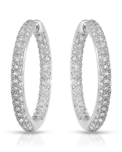 REF-263V6T - SKU: JF351705 ---- 2.1 CTW White Round Diamond Hoop Earring 14K White Gold