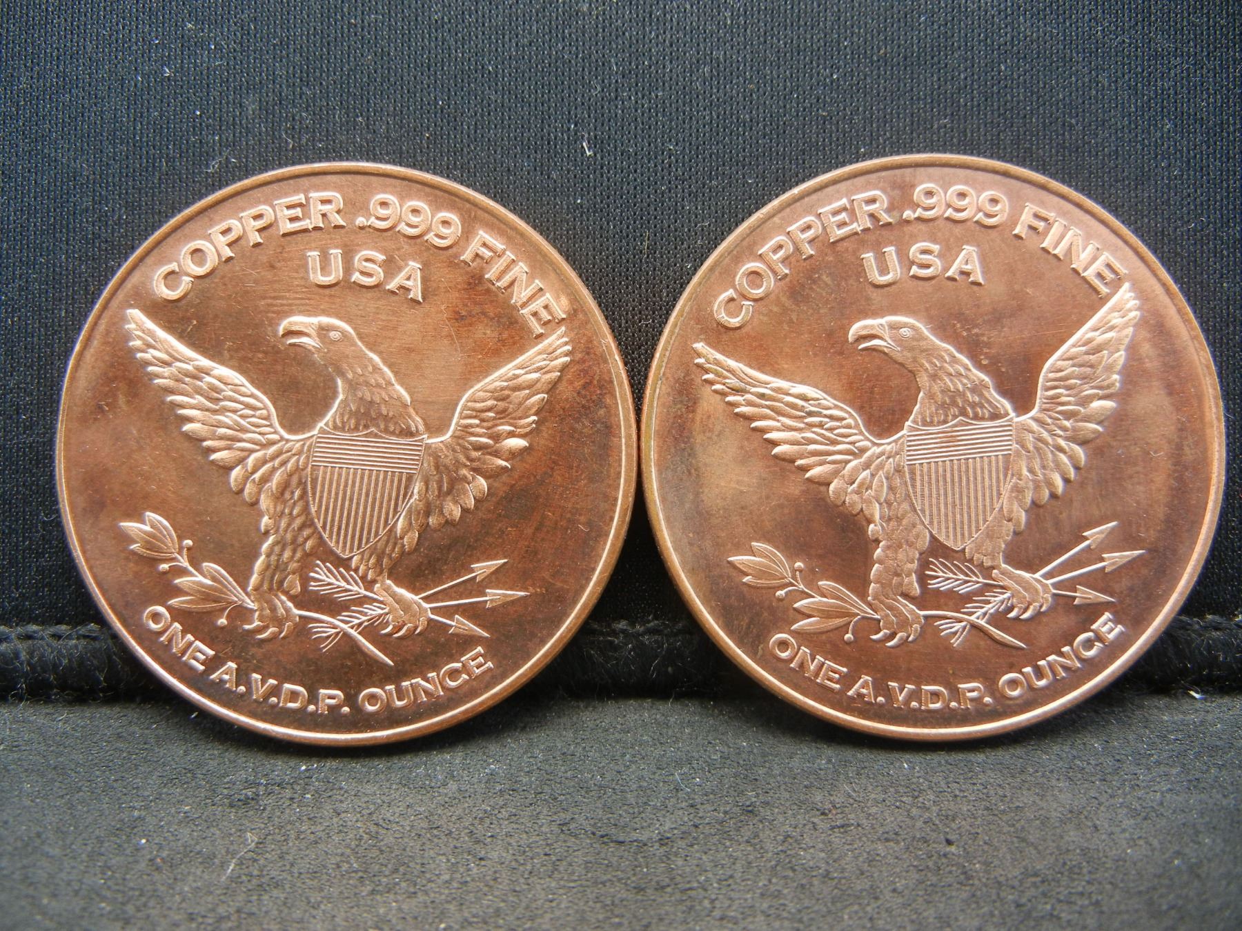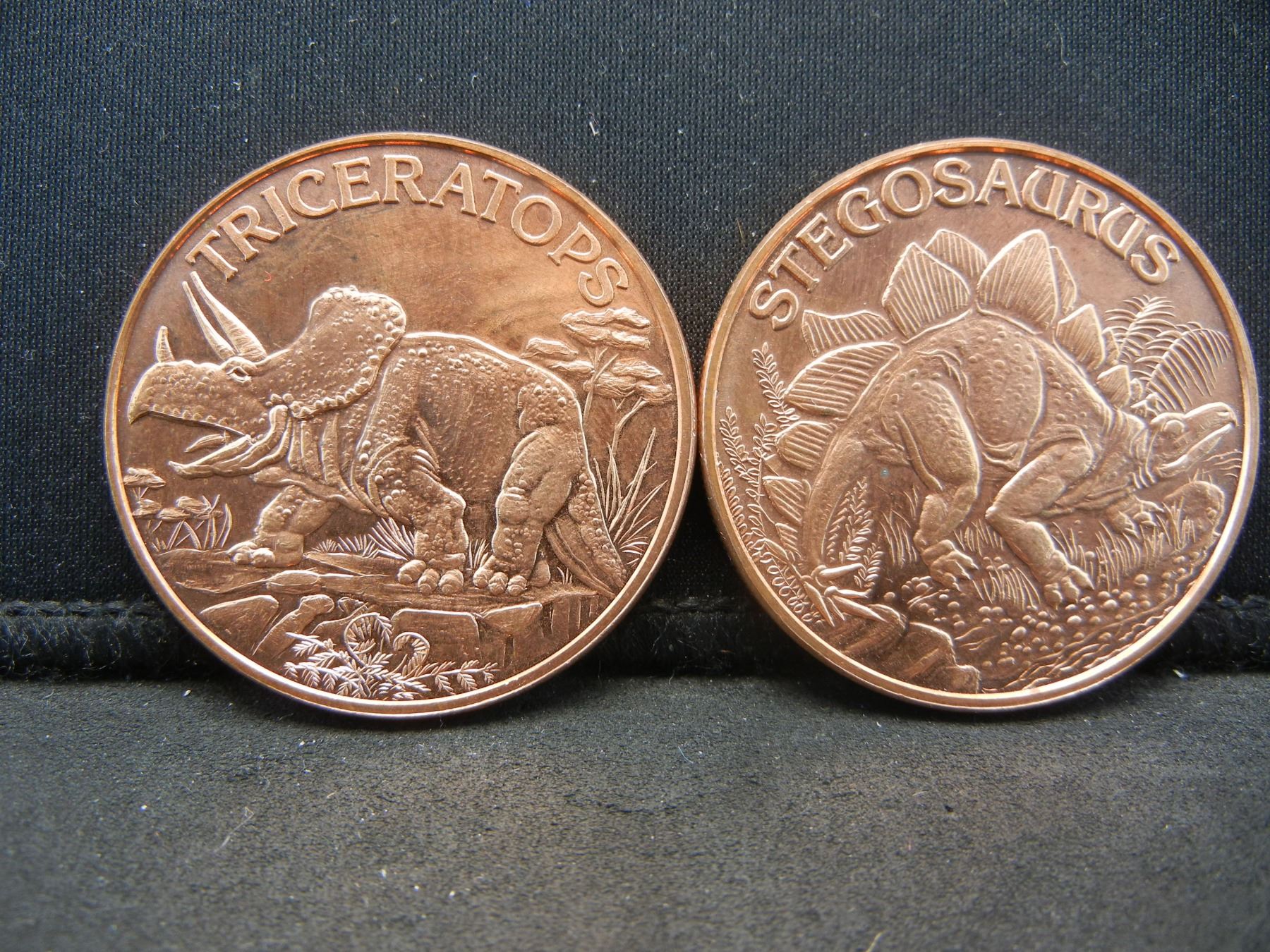 (2)-1 OUNCE PURE COPPER (.999) ROUNDS (DINASAUR'S), PROOF!