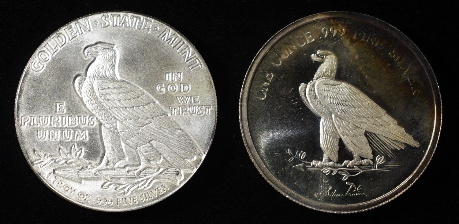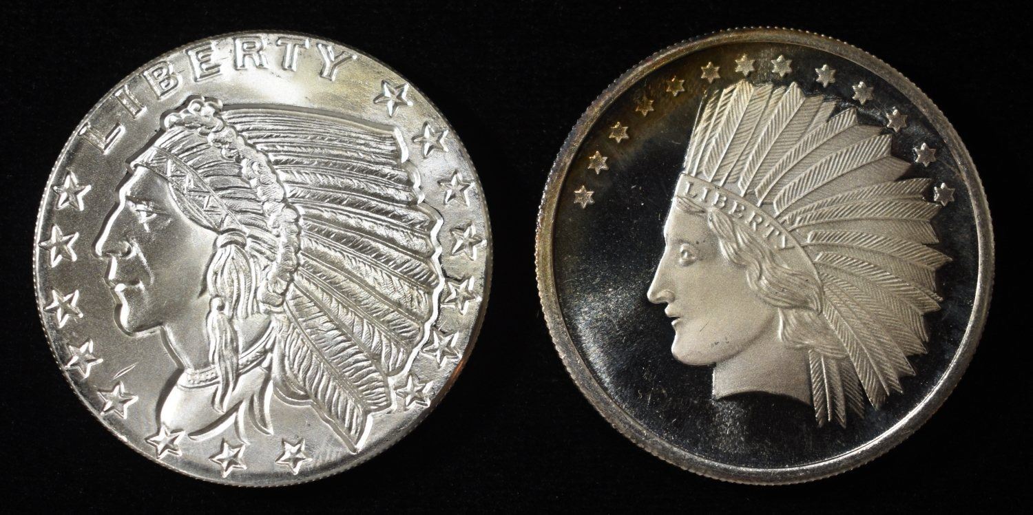 (2) 1 OZ .999 SILVER ASSORTED INDIAN HEAD ROUNDS