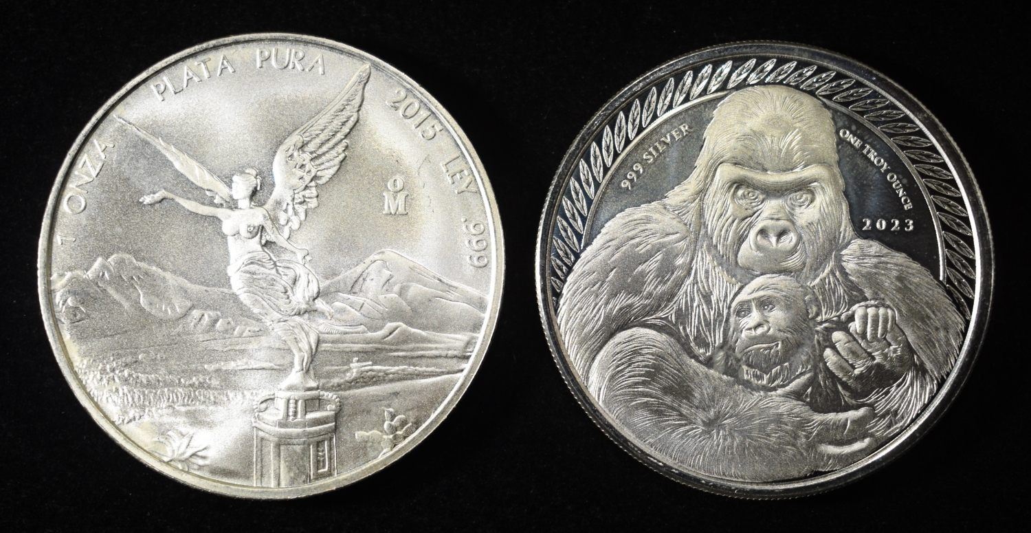 2015 MEXICO ANGEL OF INDEPENDENCE ROUND, 2023 CONGO GORILLA ROUND ESTIMATE $100 - $120.