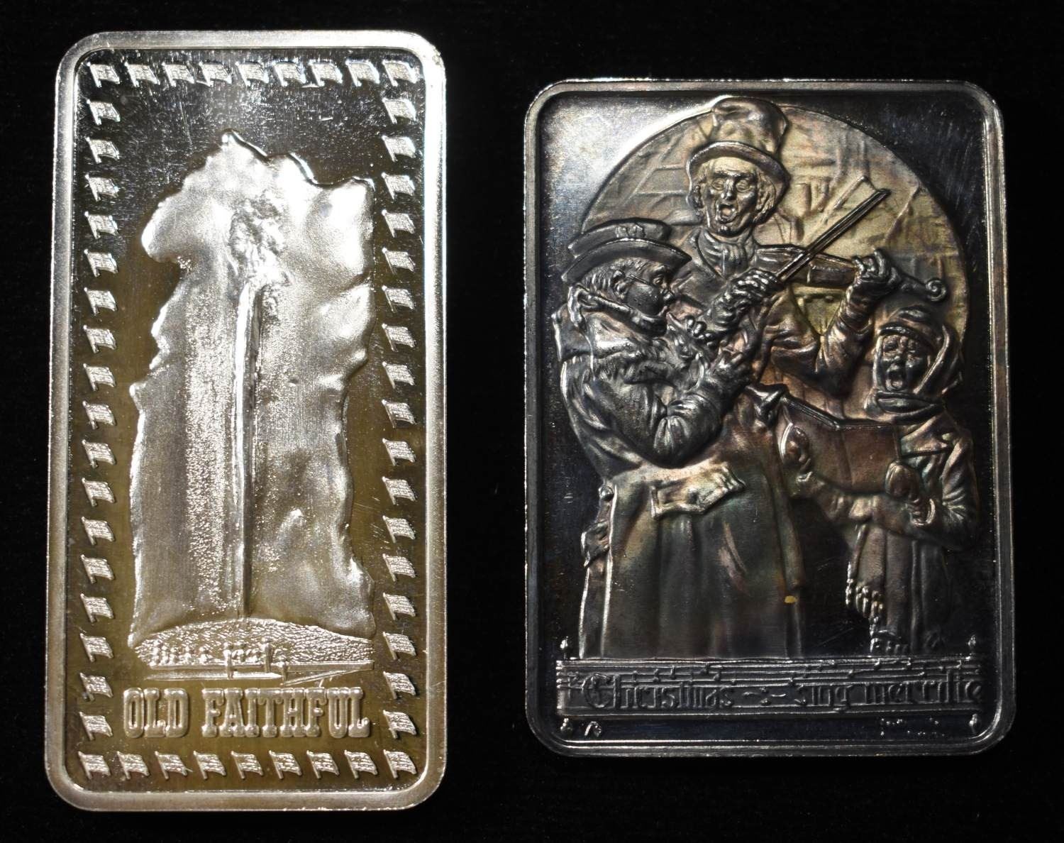 OLD FAITHFUL & CHRISTMAS SING MERRILIE 1 OZ .999 SILVER HAMILTON MINT BARS ESTIMATE $160 - $210.