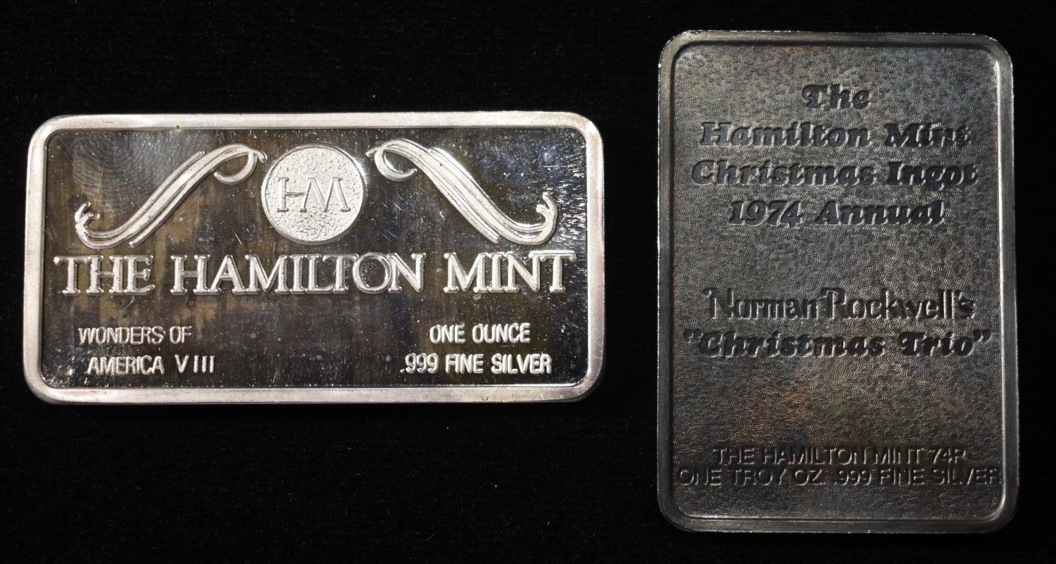 (2) 1 OZ .999 SILVER HAMILTON MINT BARS