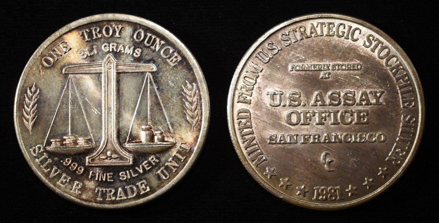 (2)1 OZ .999 SILVER ROUNDS ASSAY OFFICE,TRADE UNIT