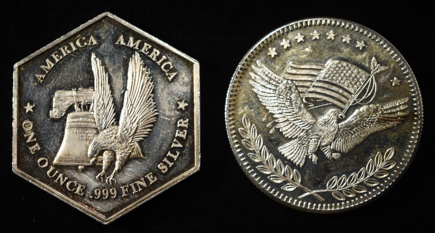 (2) 1 OZ .999 SILVER TRADE UNIT EAGLE & FLAG