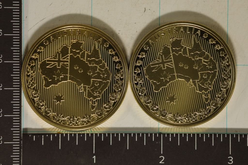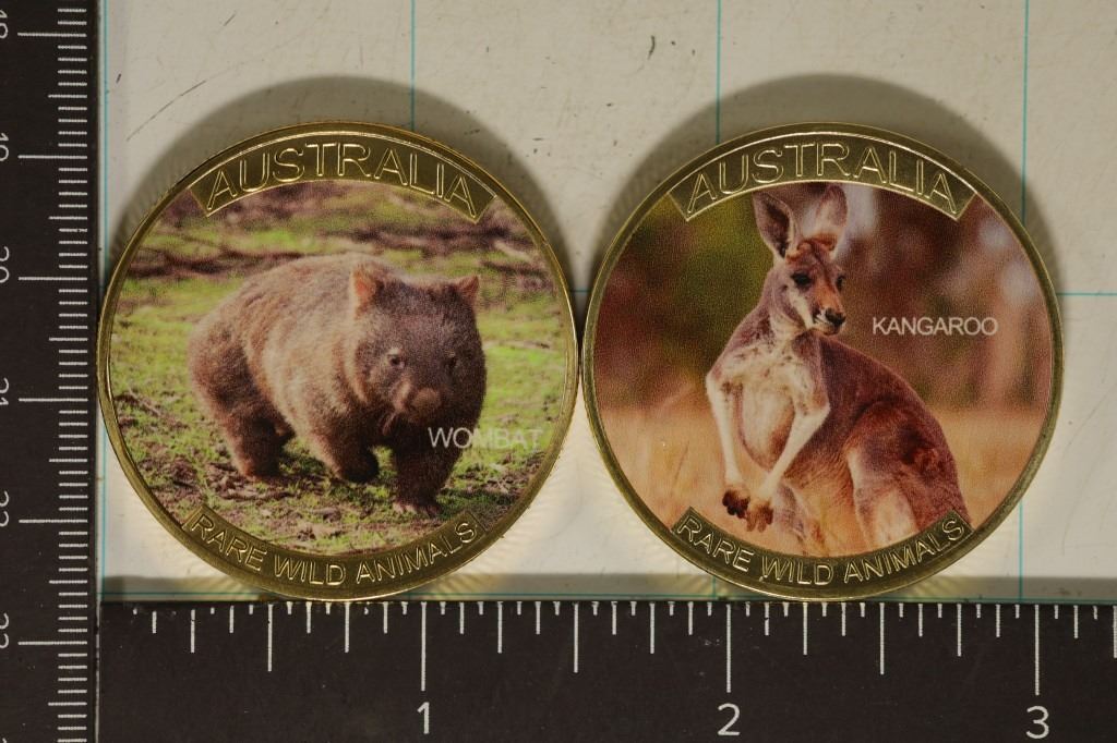 ROUNDS, KANGAROO AND WOMBAT. BOTH IN HARD PLASTIC CAPSULES, COLORIZED ON ONE SIDE