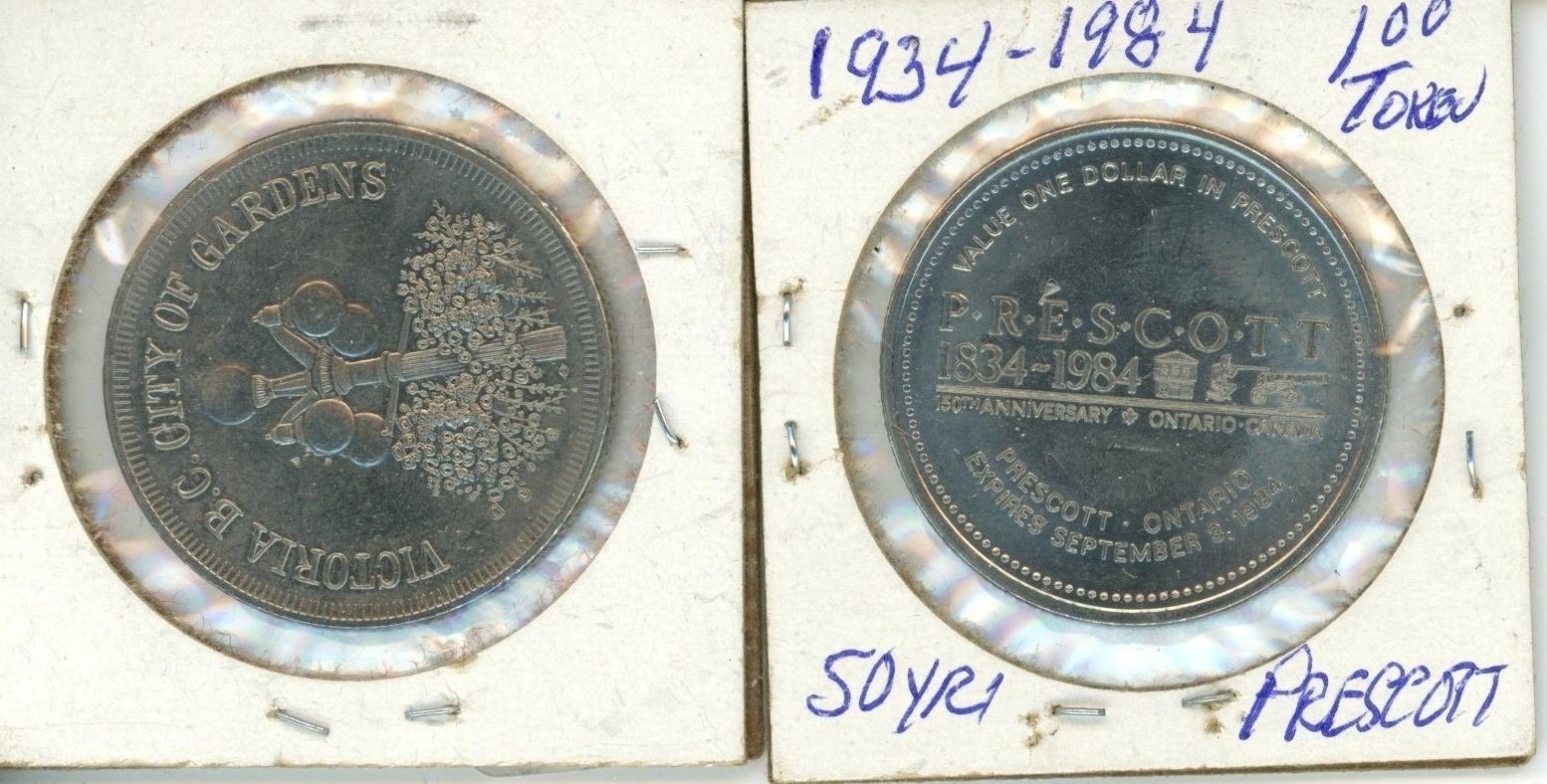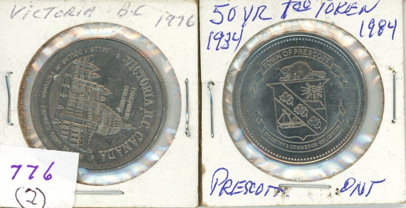 2-$1 Tokens Victoria 1976/Prescott Ont. 1984