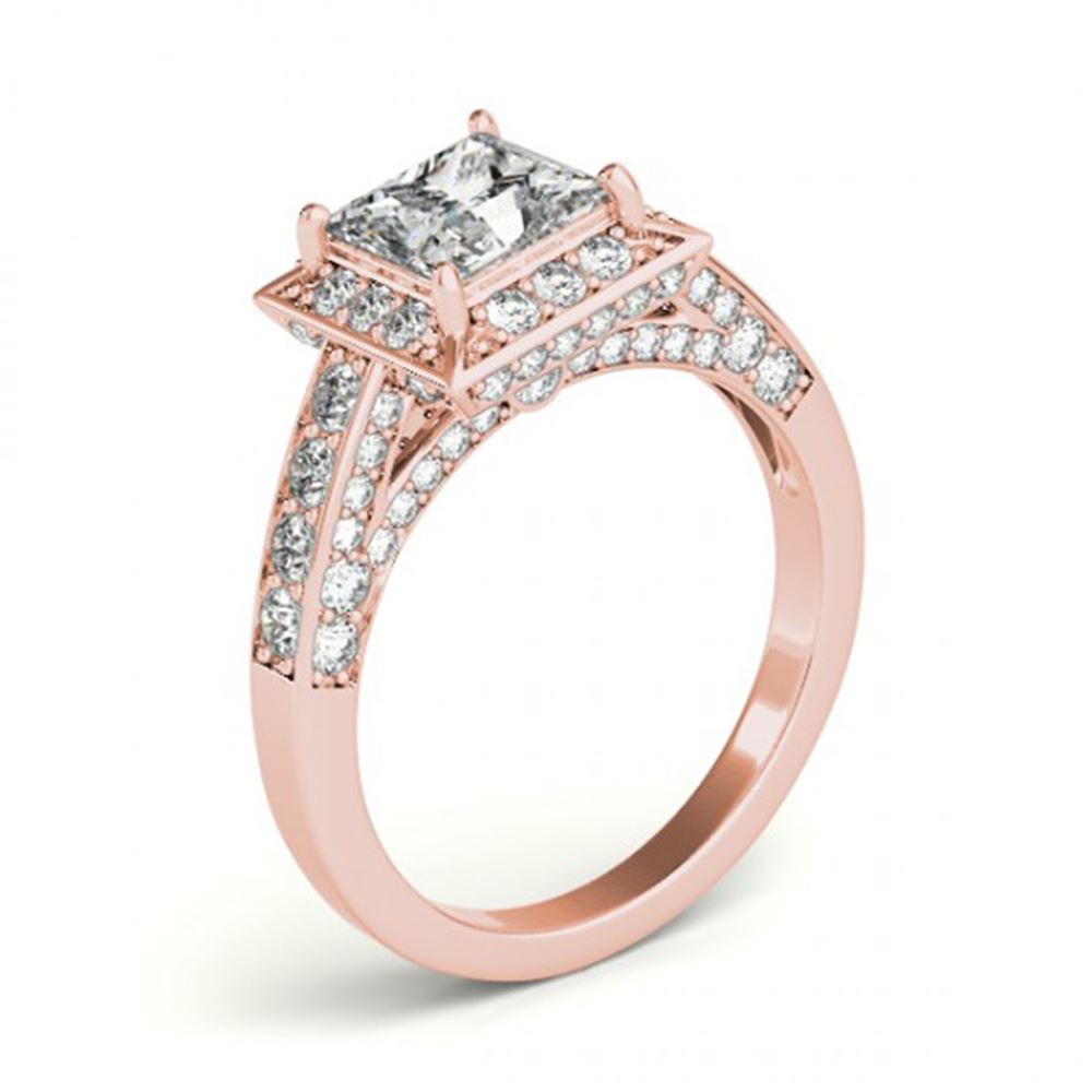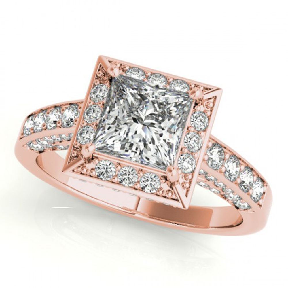 REF-218W2H - SKU: 27172 ---- 2.1 ctw Certified VS/SI Princess Diamond Halo Ring 18k Rose Gold
