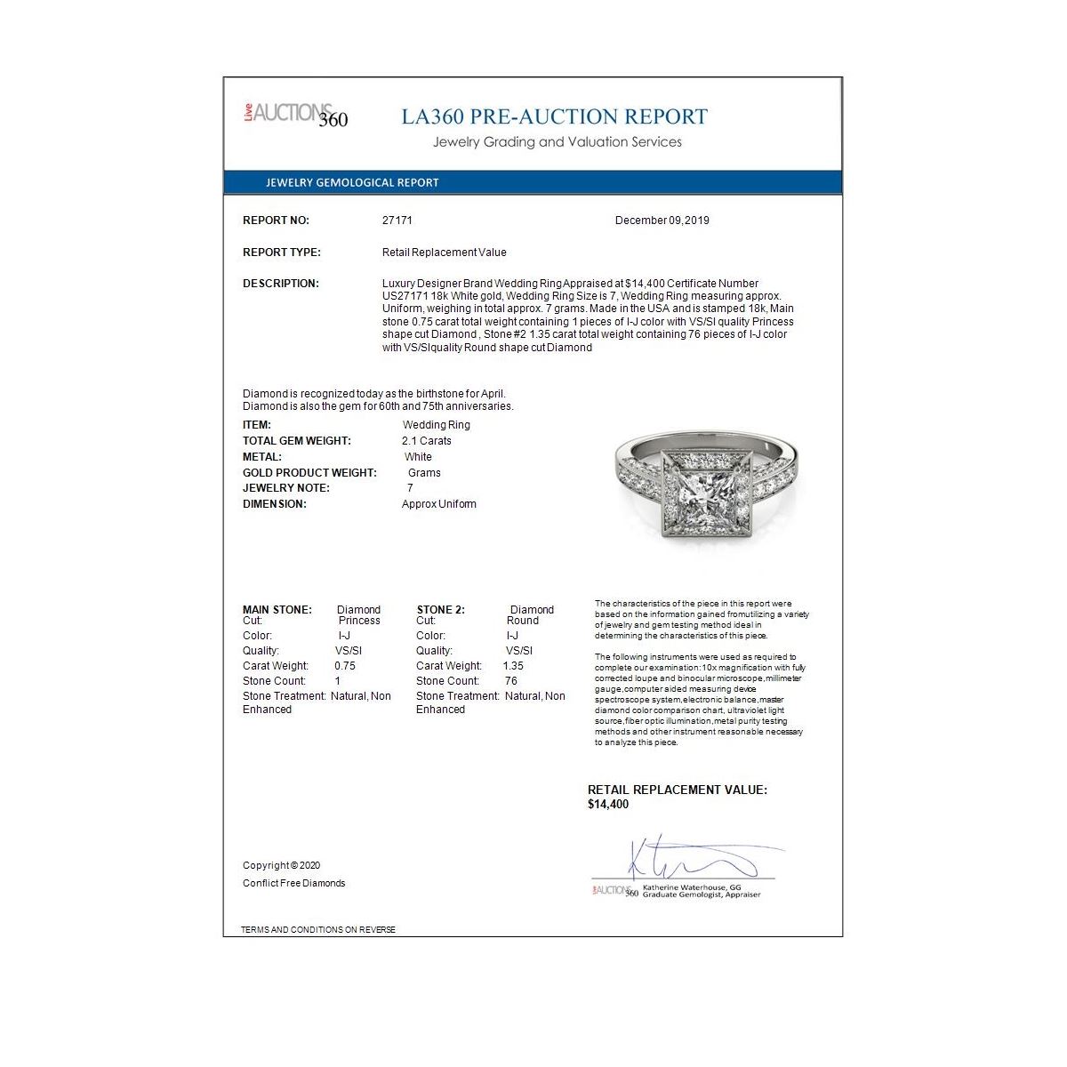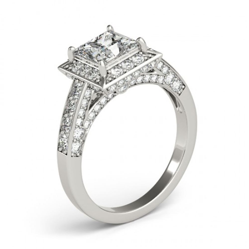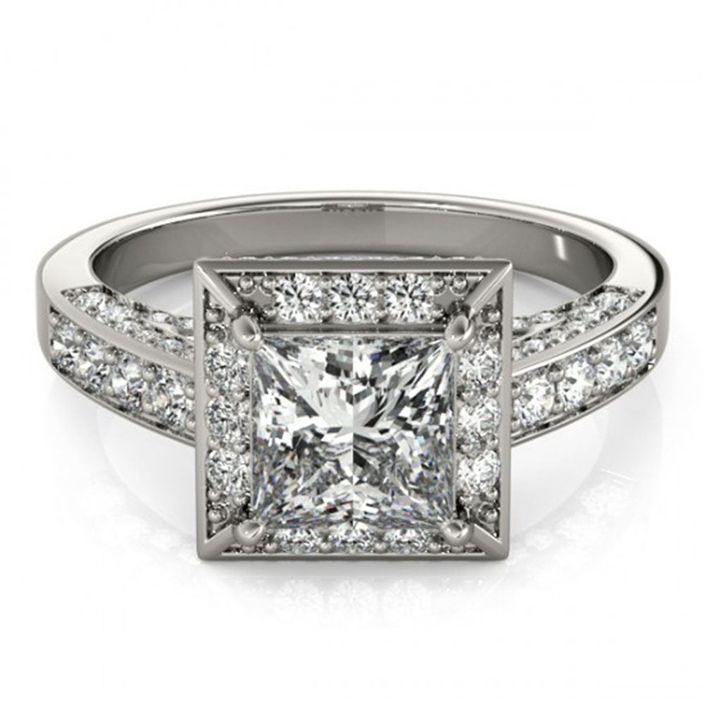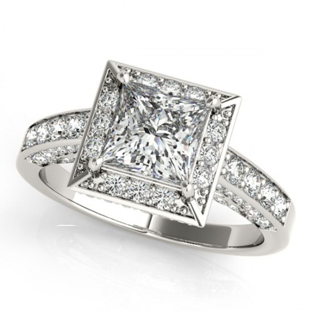 REF-218M2G - SKU: 27171 ---- 2.1 ctw Certified VS/SI Princess Diamond Halo Ring 18k White Gold
