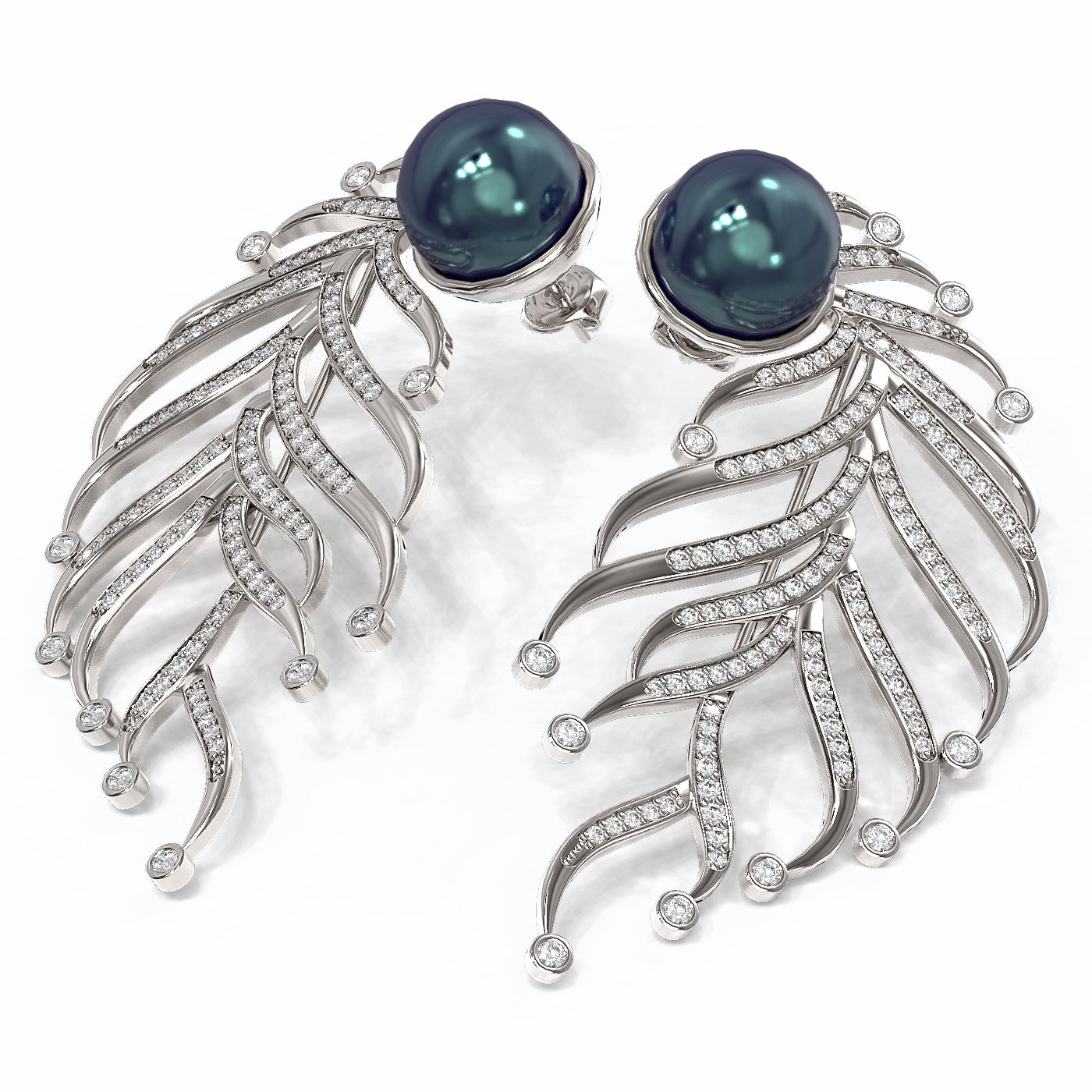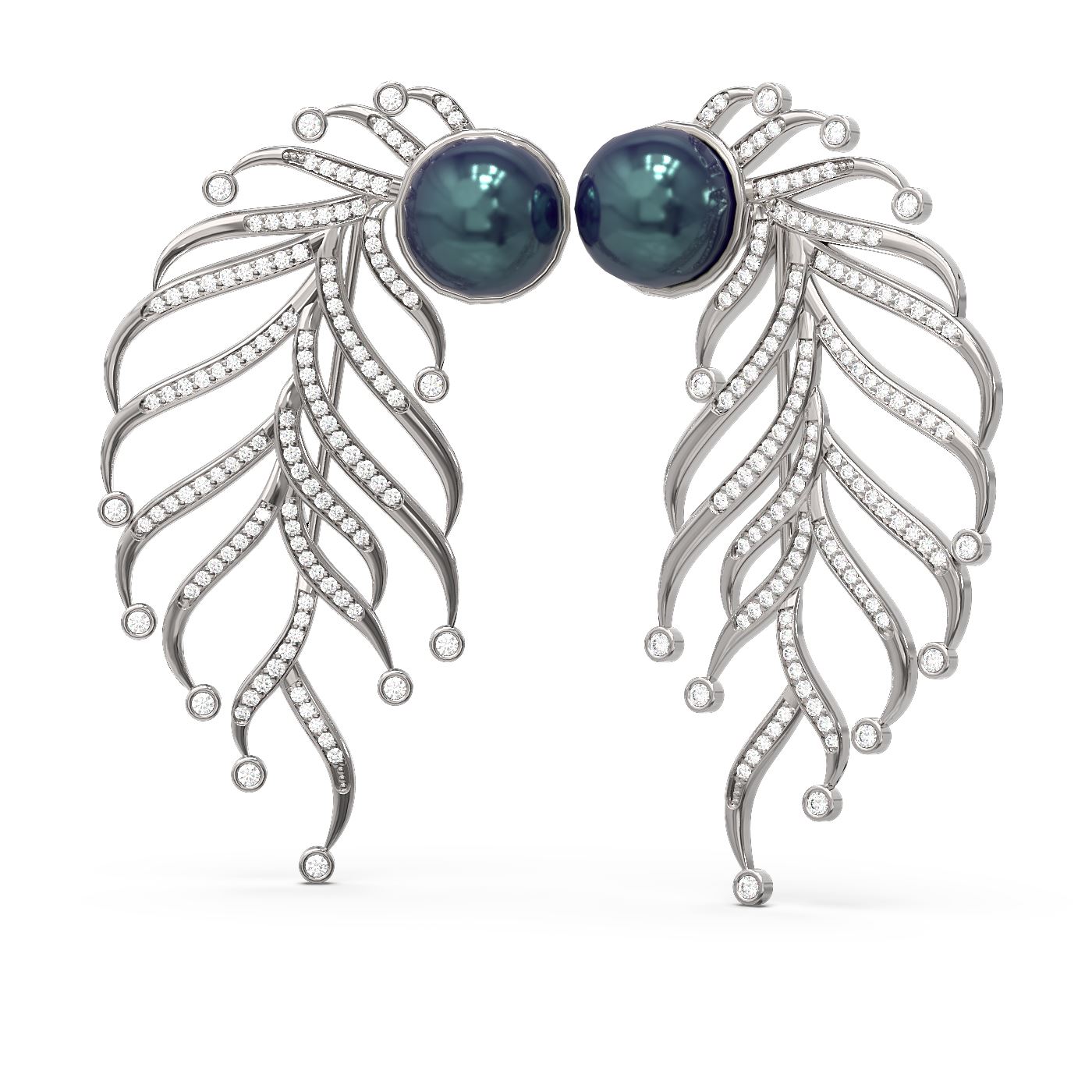 REF-265R6K - SKU: 58814 ---- 2.1 ctw Diamond & Pearl Earrings 18K White Gold
