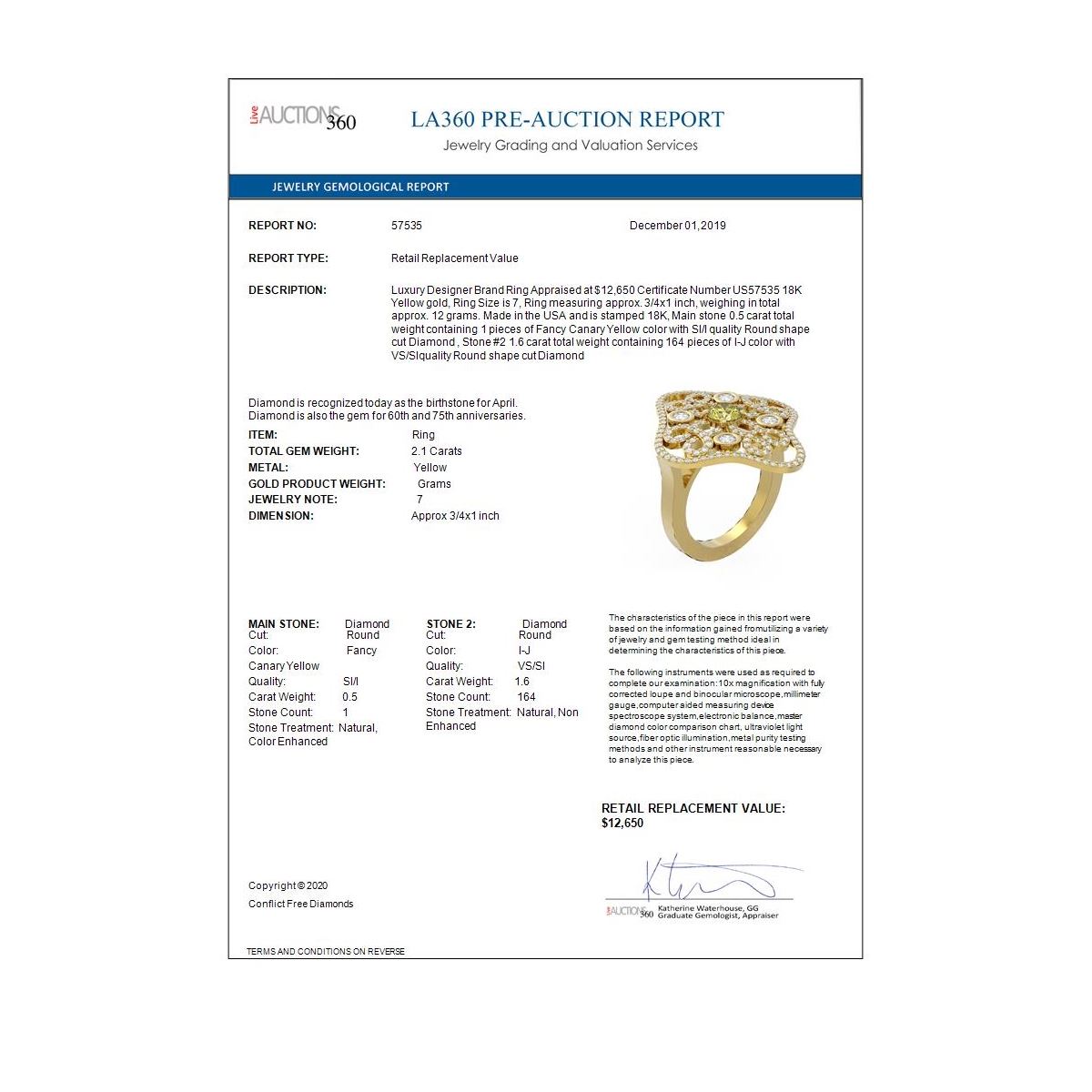 REF-287M3G - SKU: 57535 ---- 2.1 ctw Fancy Yellow Diamond Ring 18K Yellow Gold