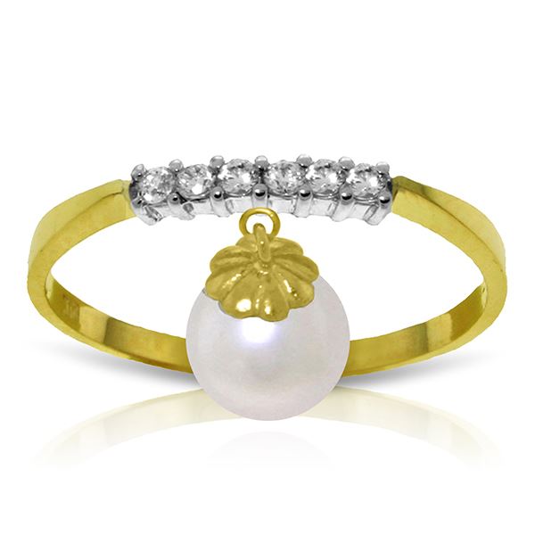 Genuine 14K Yellow Gold 2.1 ctw Pearl & Diamond Ring