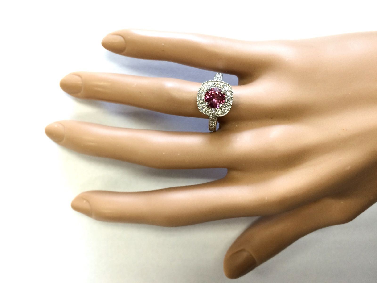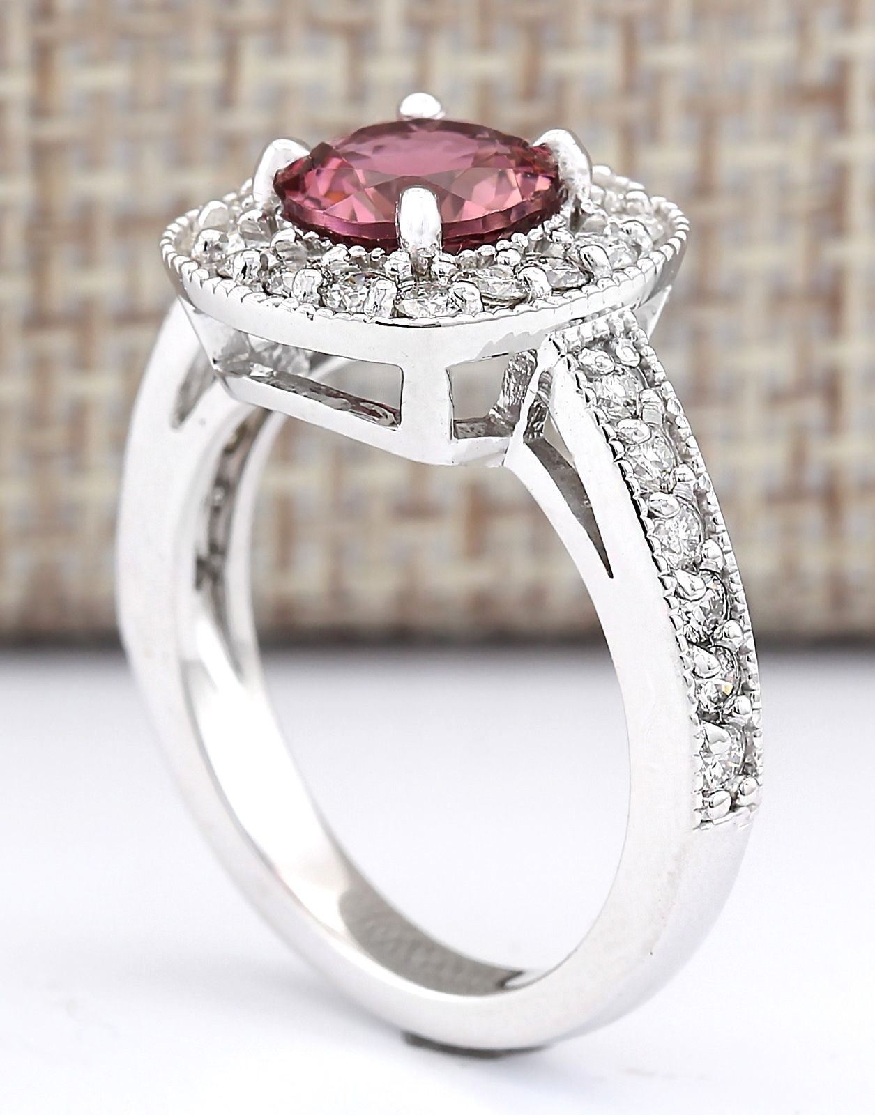 2.10 CTW Natural Pink Tourmaline And Diamond Ring 14k Solid White Gold