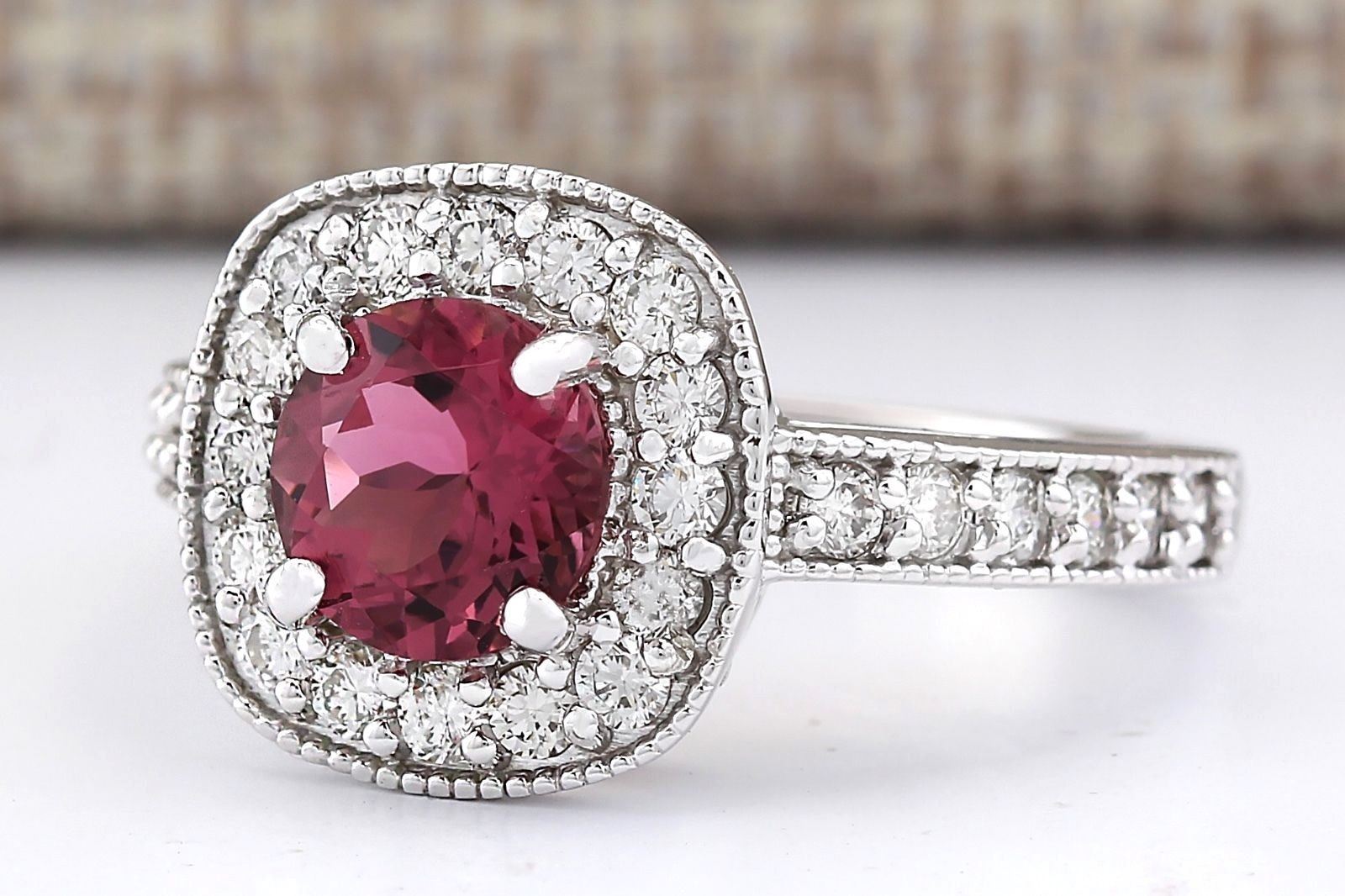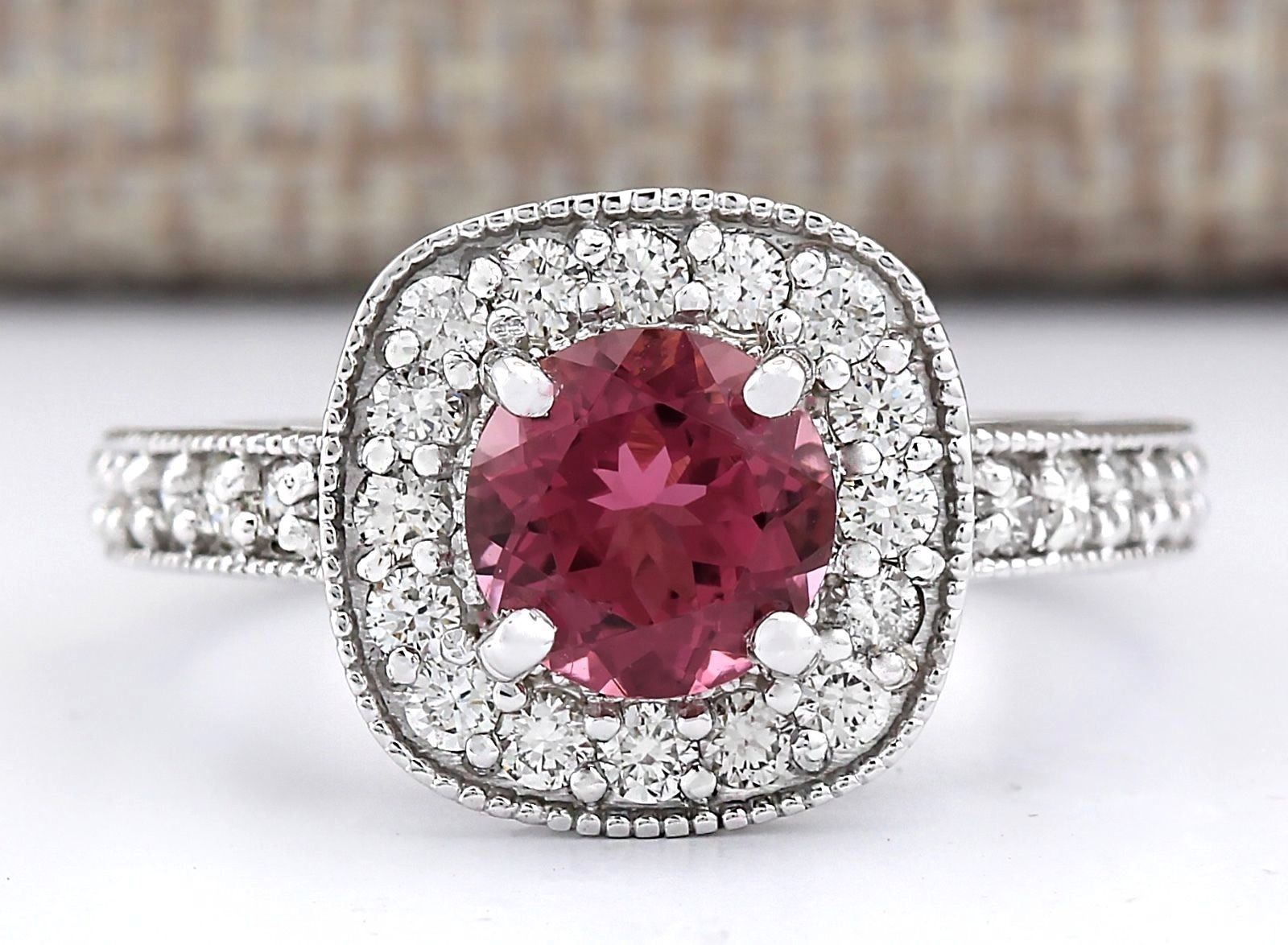 2.10 CTW Natural Pink Tourmaline And Diamond Ring 18K Solid White Gold