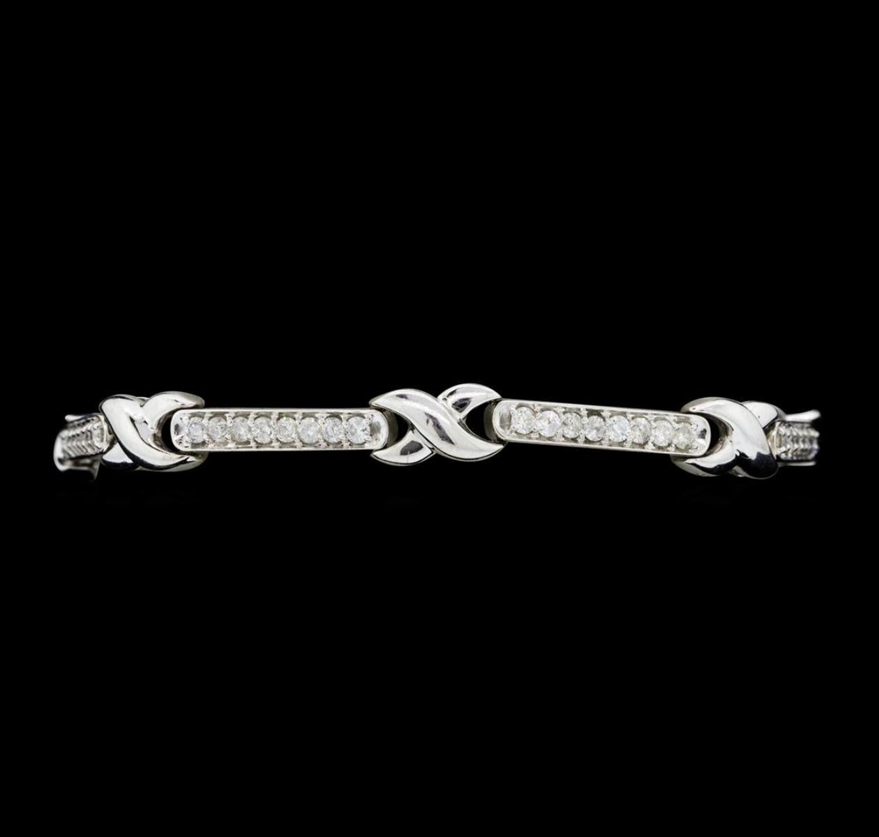 One electronically tested 14KT white gold lady's combination cast & assembled fashion bracelet with a tongue clasp with foldover safety with a bright polish finish. The featured lady's bracelet measures approximately seven and a quarter inches in length. Identified with markings of '14K'. Condition is new, good workmanship. Containing: Fifty-Six prong set round brilliant cut diamonds, measuring 2.20 - 2.10 x 1.33mm (depth est.) approximate total weight of 56 Stones = 2.10ct. Graded in the setting. Color G - I Clarity I-1 to I-2 Cut Good. Total Weight of Diamonds 2.10ct.. Total Weight of Bracelet 14.40gm GAS Appraised at $4210.00. GAS Appraised.